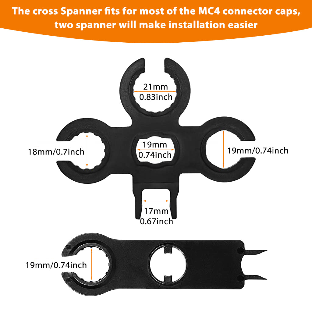 - MULTI USE WRENCH: Two additional MC4 spanners allow you to work efficiently. Cross spanner: 18/19/21 mm. Straight spanner: 19 mm.