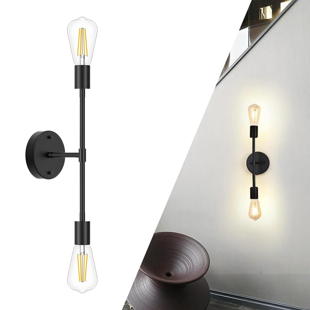 ELEPHANTBOAT® wall lamp fixtures feature a minimalist industrial metal design that combines a sleek black finish with a retro dual-head stick structure for a balanced and stylish lighting effect. Crafted to enhance home decoration, this 13.4-inch wall light offers versatile use in hallways, living rooms, bedrooms, or corridors. Its durable metal construction ensures long-term stability, while the dual-head layout creates both aesthetic appeal and functional illumination. With an easy wired installation process and no bulbs included, users can customize their preferred light tone and brightness. This ELEPHANTBOAT® fixture delivers dependable performance and a refined industrial look for homes seeking a clean, modern lighting solution.