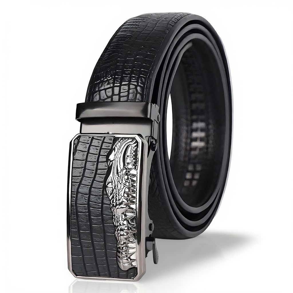 GUSTAVE Belts for Men Black Slide Lock Leather Belt for Man with Click Buckle delivers a refined combination of durability and style. Made from premium PU leather, this belt replicates the texture of genuine leather, giving it a professional appearance suitable for casual and business attire. The elegant crocodile pattern buckle adds a distinctive touch of sophistication, while the adjustable auto-lock design ensures a secure and customized fit without belt holes. With a versatile 120cm length, it conveniently fits various waist sizes. Ideal as a thoughtful gift, this GUSTAVE belt provides everyday comfort and lasting style that reflects quality craftsmanship and practical design.