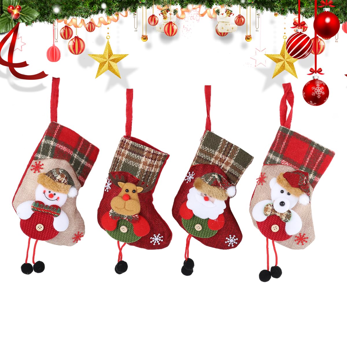 HASTHIP Christmas Stockings Set for Tree and Home Decor featuring 4pcs 14x19 cm Fabric Designs