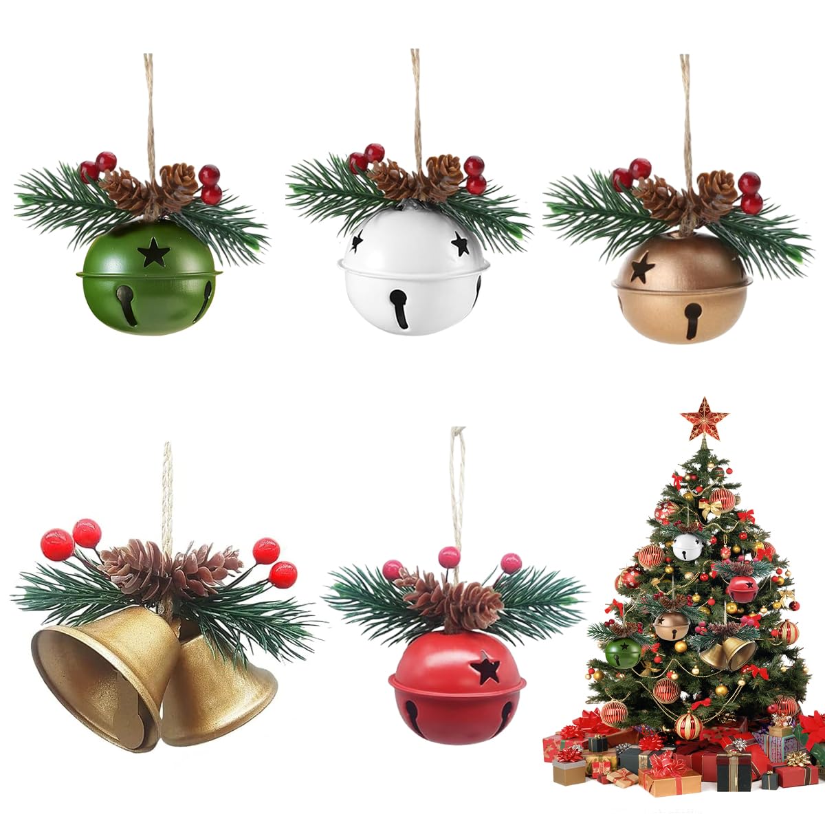 - HASTHIP Christmas Jingle Bells for Tree and Home Decor featuring Hemp Rope Hanging | 5PCS 3.9 in Metal Ornaments HASTHIP Christmas Jingle Bells for Tree and Home Decor featuring Hemp Rope Hanging | 5PCS 3.9 in Metal Ornaments
