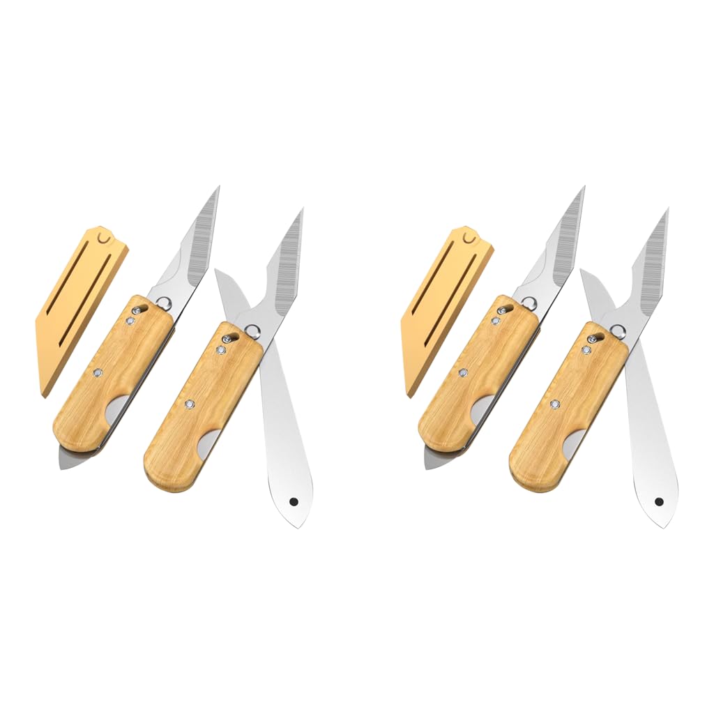 HASTHIP Grafting Cutter Tool 3 in 1 for Gardening with Wooden Handle and Rugged Steel | 2PCS