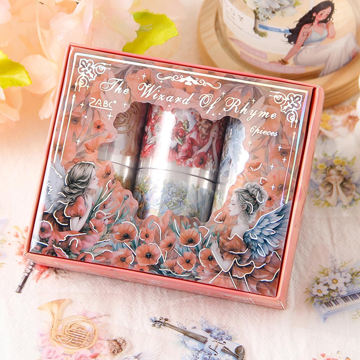 OFIFO Scrapbook Decorative Stickers Gift Set for Journals with 6 Rolls 50mm x 2m PET | Fairy and Angel Themed Decals
