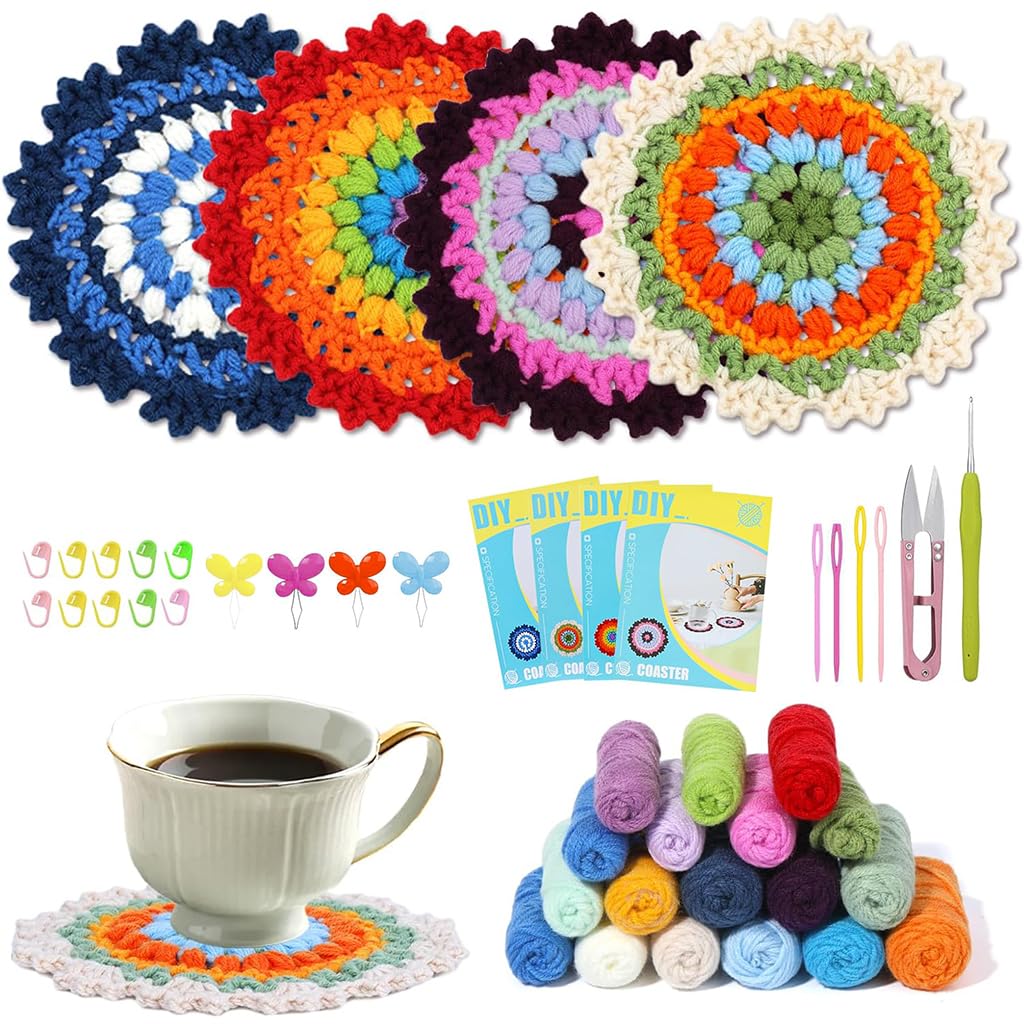 - PATPAT DIY Crochet Kit for 4 Floral Coasters with Ergonomic Hook and Tutorial Guide | Beginner Gift Set PATPAT DIY Crochet Kit for 4 Floral Coasters with Ergonomic Hook and Tutorial Guide | Beginner Gift Set