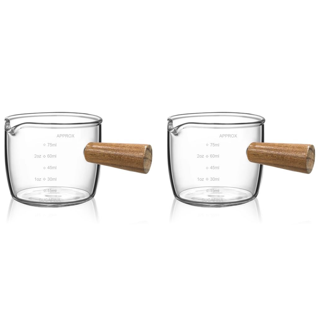 Supvox Espresso Shot Glass Double Espresso Cups 75ml Measuring with Wooden Handle feature durable, heat-resistant high silicon boron glass designed for reliable performance in both home and professional coffee settings. Each 75ml double espresso shot glass provides accurate capacity for brewing rich espresso shots or measuring coffee portions precisely. The included wooden handle enhances grip and comfort during use, while the transparent glass allows easy visibility for consistent results. Crafted with quality materials suitable for high-temperature use, these measuring cups combine style, precision, and durability. Ideal for espresso enthusiasts and baristas, Supvox ensures practical design and dependable quality for daily coffee preparation.