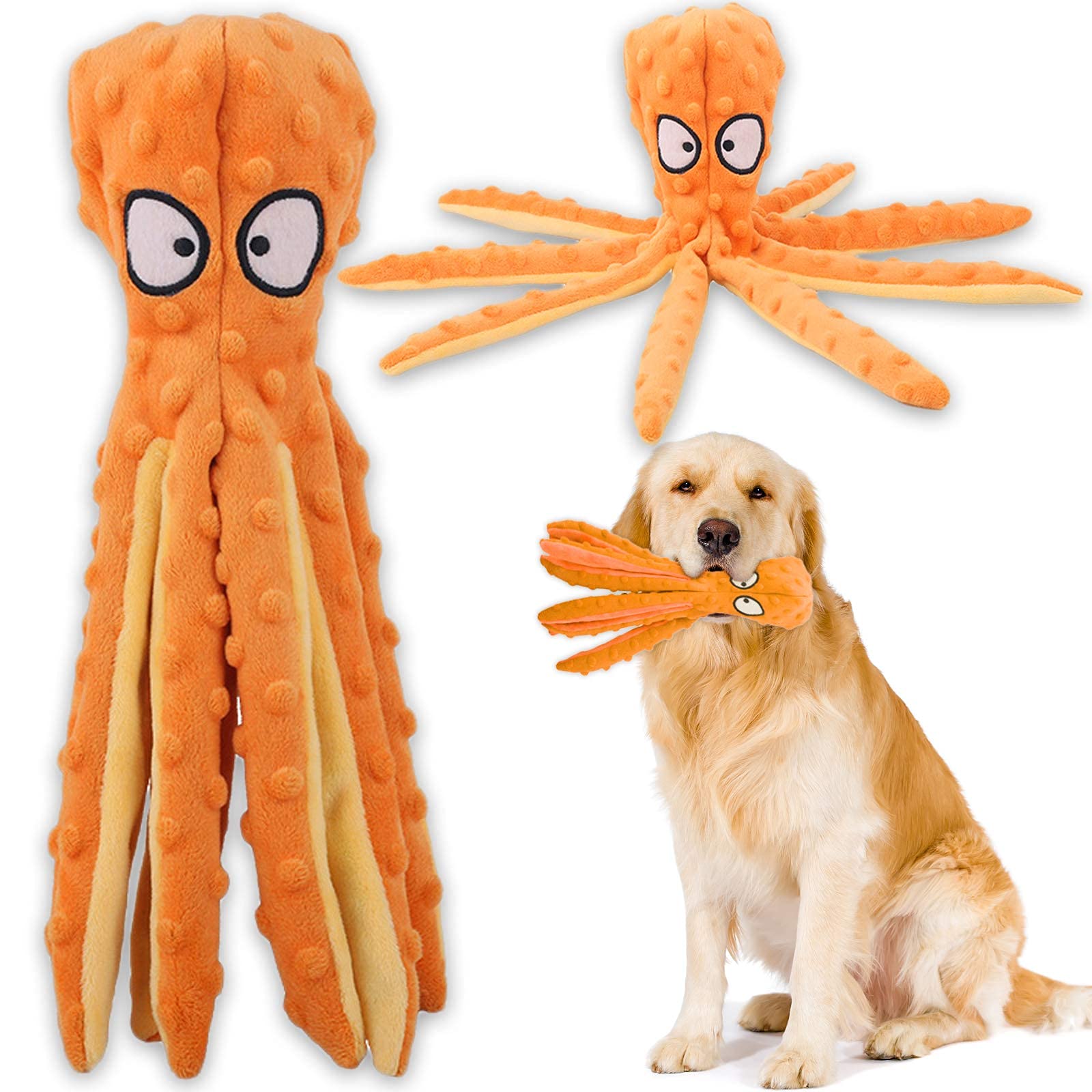 Qpets® Dog Toys for Puppies Squeaky Dog Toy with Crinkle Paper offers a fun and engaging way to support healthy play and teething for small to medium dogs. Made from safe and soft plush polyester, it provides a gentle chewing experience while helping to clean teeth naturally and is easy to maintain with machine washing. Measuring 12.6 inches, this durable octopus-shaped toy includes a built-in squeaker and crinkle paper that stimulate curiosity and prolong playtime. Its bright, cute design captures attention and helps ease anxiety or destructive behavior. Ideal for training and cognitive exercises, Qpets® creates interactive toys that encourage active play and strengthen the bond between pets and owners.