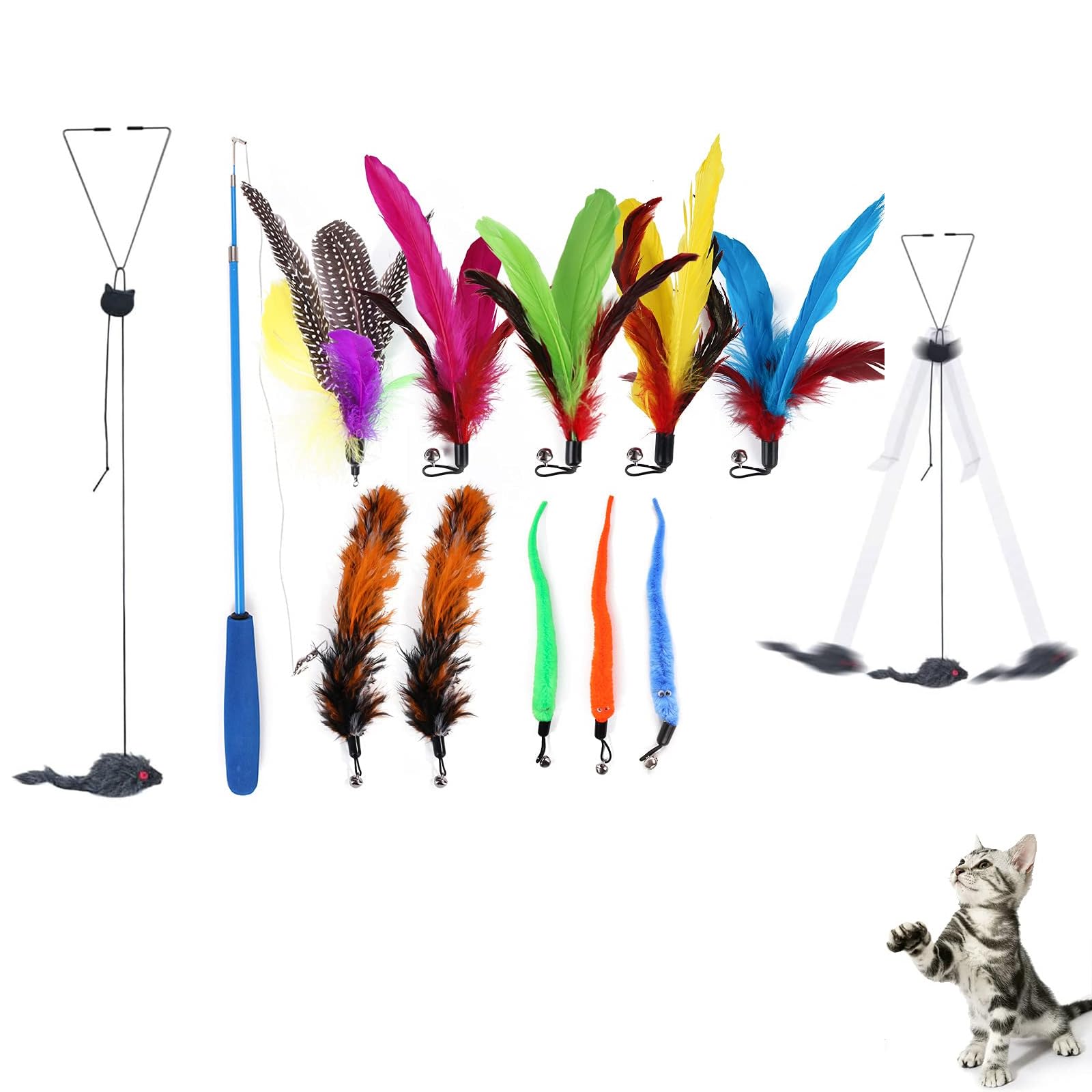 - Qpets Cat Interactive Toys Set for Indoor Play with 10 Feather Attachments | Retractable Teaser Wand and Bells for Kittens Qpets Cat Interactive Toys Set for Indoor Play with 10 Feather Attachments | Retractable Teaser Wand and Bells for Kittens