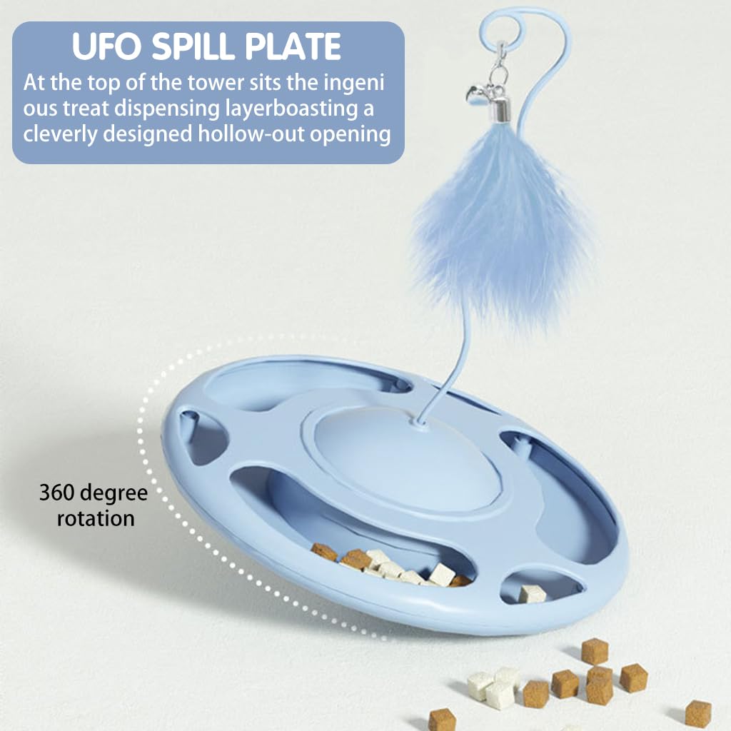 - INTERACTIVE 3-LAYER DESIGN: This captivating cat treat dispenser toy boasts a unique 3-layer disk tower structure. The middle and bottom layers are ingeniously integrated with rotating ball toys, designed to stimulate your cat's predatory instincts as they swipe and bat at the moving targets. This multifaceted design encourages playful activity and satisfies your feline's natural urges, ensuring hours of entertainment.