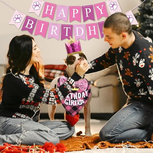 - Qpets Dog Birthday Party Set, Paw-print Dog Birthday Banner Dog Birthday Bandanas, Doggie Sequine Bow Ties, Crown Birthday Hat, Golden Number Decorations Birthday Party for Dogs, Pink Qpets Dog Birthday Party Set, Paw-print Dog Birthday Banner Dog Birthday Bandanas, Doggie Sequine Bow Ties, Crown Birthday Hat, Golden Number Decorations Birthday Party for Dogs, Pink