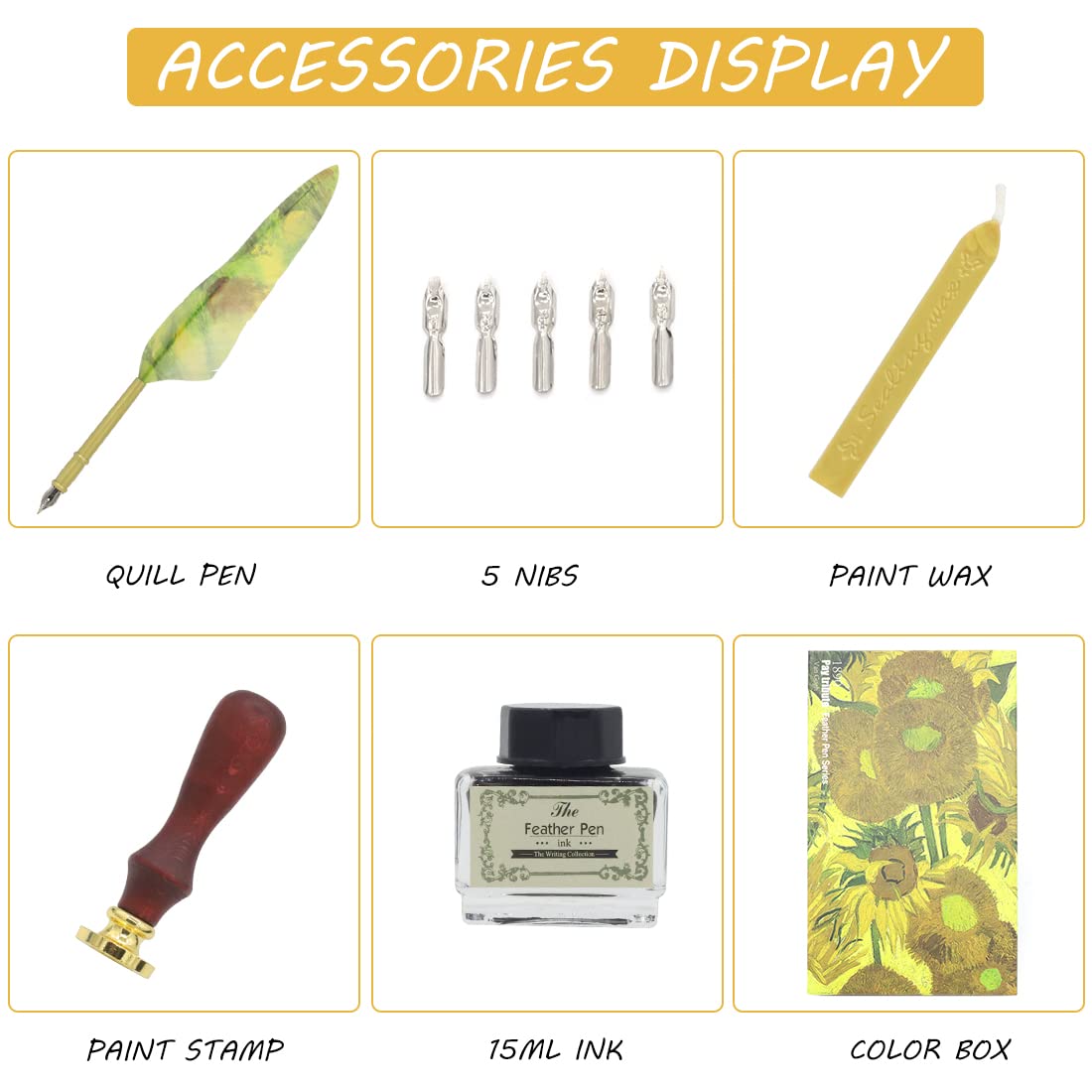 - HASTHIP Quill Pen Ink Wax Seal Stamp Gift Set, Feather Pen Ink Set Includes Feather Dip Pen,15ml Ink, 5 Replacement Nibs, 1 Paint Seal, 1 Paint Wax Valentine Gift (Sunflower) HASTHIP Quill Pen Ink Wax Seal Stamp Gift Set, Feather Pen Ink Set Includes Feather Dip Pen,15ml Ink, 5 Replacement Nibs, 1 Paint Seal, 1 Paint Wax Valentine Gift (Sunflower)