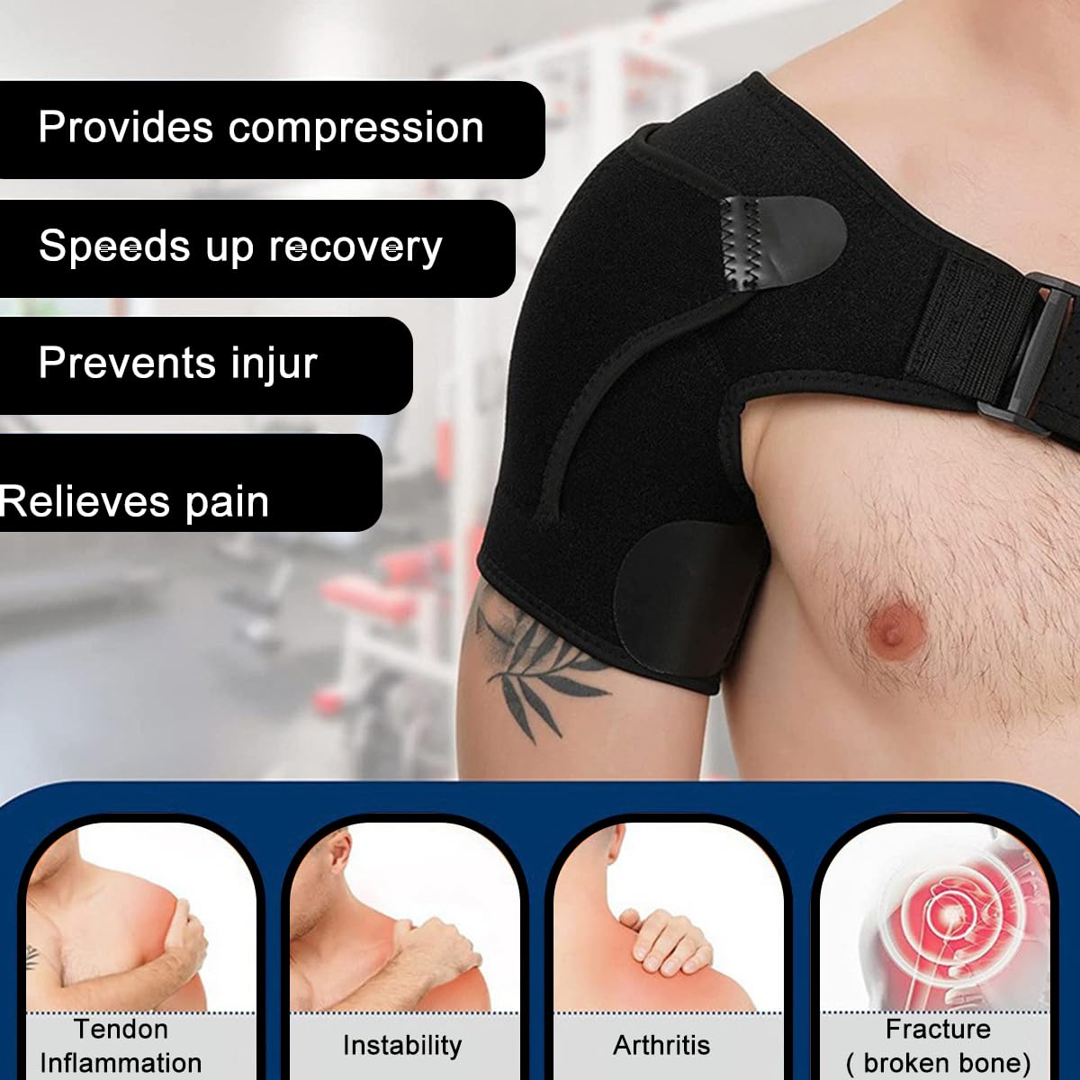 - VERSATILE SHOULDER SUPPORT BRACE: Experience the healing benefits of gentle compression with this breathable shoulder support. The versatile shoulder support brace is designed to offer soothing relief and steady support to your shoulder without compromising on comfort. Its gentle compression aids in enhancing blood circulation, reducing inflammation, and alleviating pain, making it an essential for anyone suffering from shoulder discomfort due to injury, surgery, arthritis or overuse.
