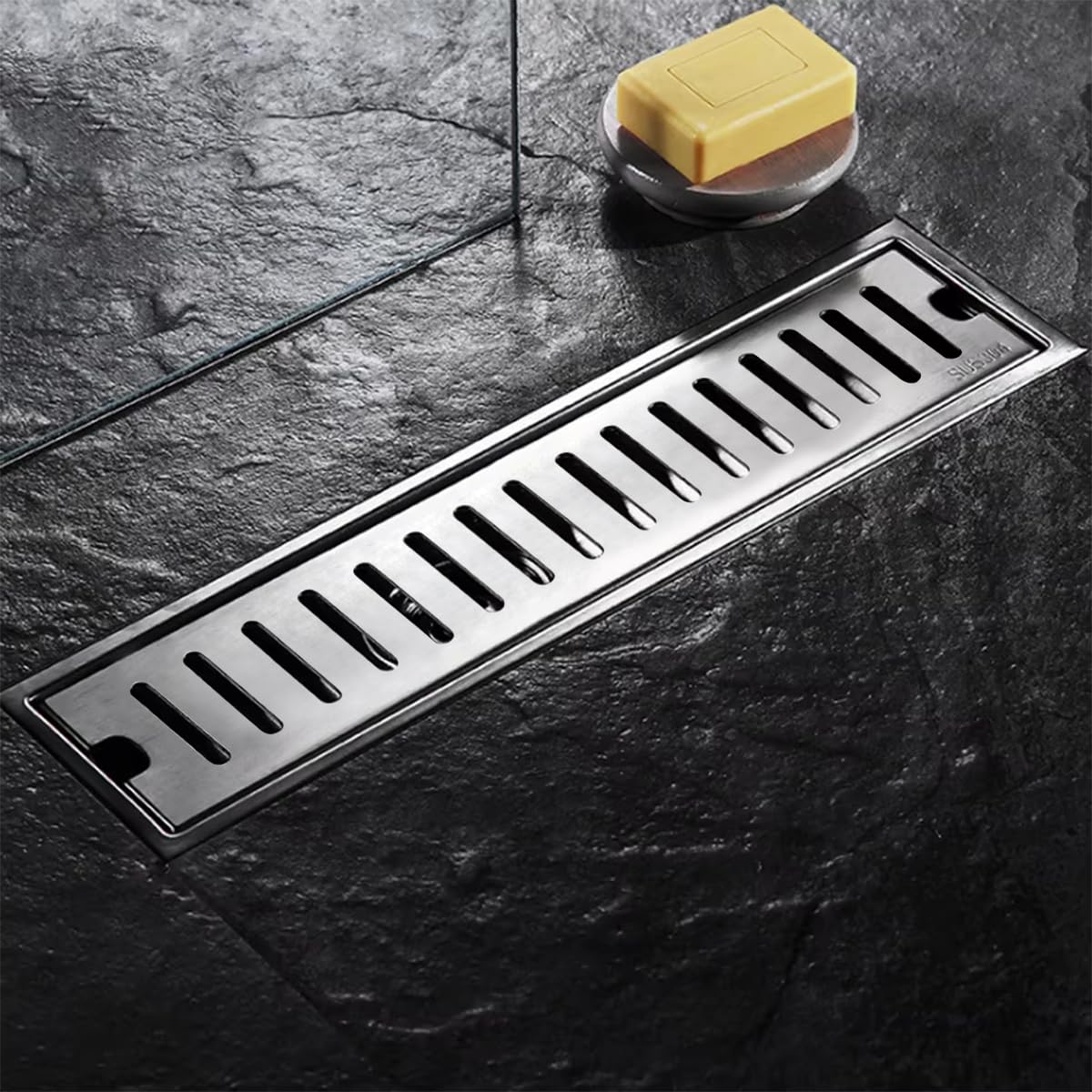 Serplex Linear Shower Drain Modern Bathroom Brushed 304 Stainless Steel Linear Shower Floor Drainer provides a durable and stylish drainage solution for modern bathroom renovations. Made from high-quality brushed stainless steel, it resists rust and corrosion, ensuring reliable long-term performance even with daily water exposure. The sleek invisible design integrates seamlessly into tile, stone, or concrete flooring for a clean and contemporary aesthetic. Its 11.8 x 4-inch structure promotes efficient water drainage, helping prevent standing water and shower flooding. With easy installation, removable grate, and versatile adaptability, this Serplex shower drain offers users practicality, durability, and a refined finish for a well-designed, efficient bathroom space.