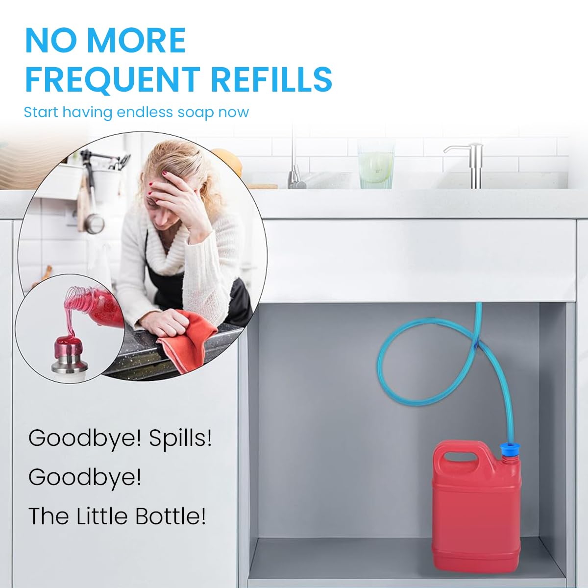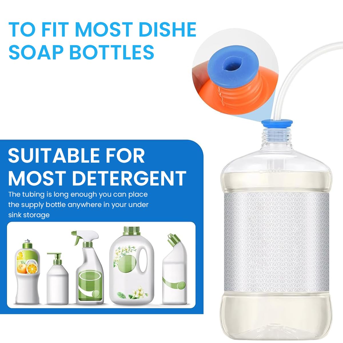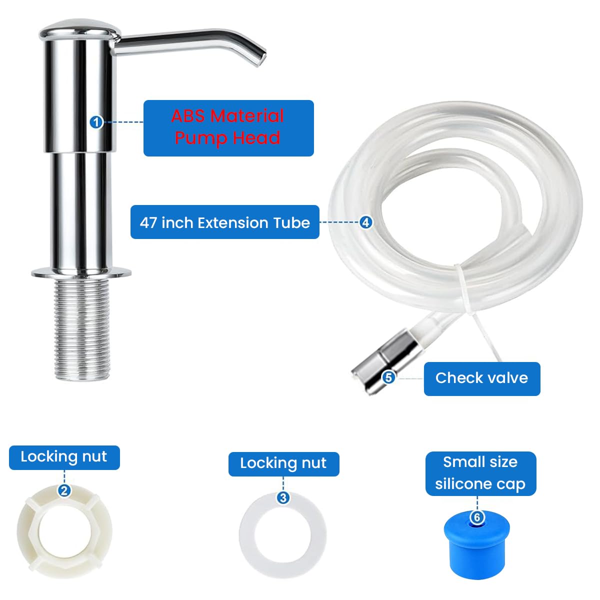 - EXTENDED REACH: Featuring a 3.3ft long pipe, this soap dispenser offers ample length to easily connect the pump to your soap container hidden beneath the kitchen sink. This extended reach ensures you dont need to constantly refill a small reservoir, enhancing convenience and efficiency.