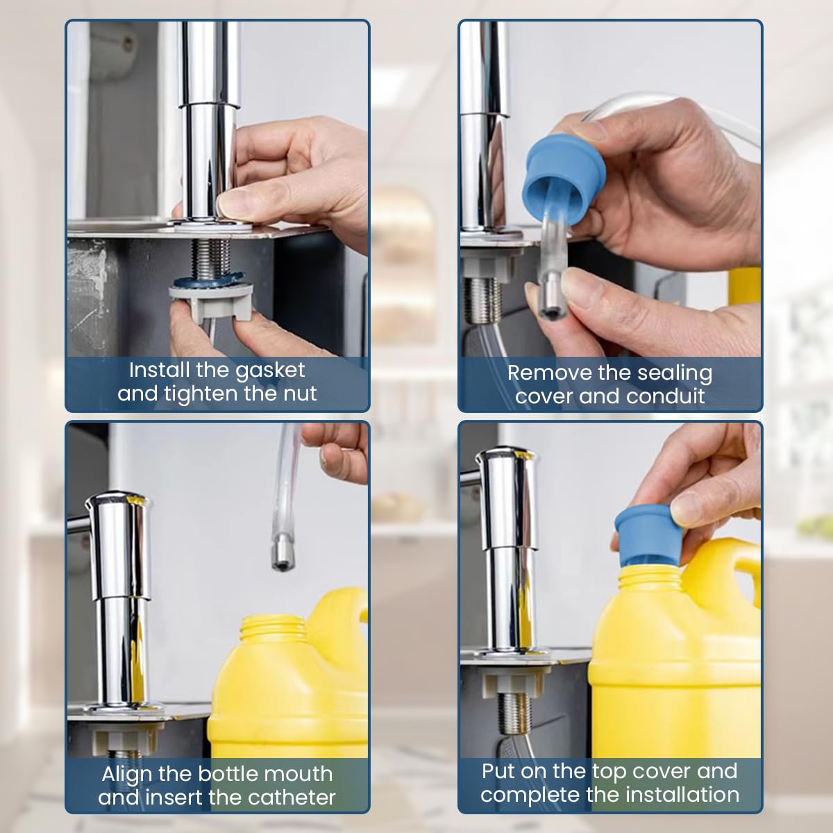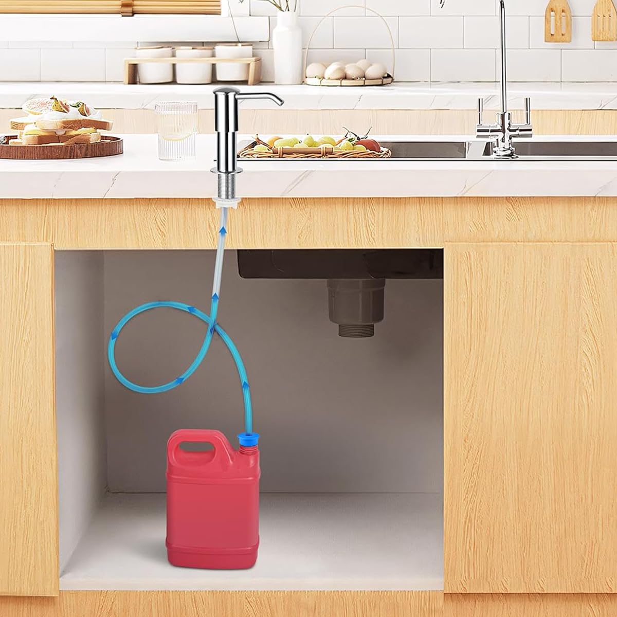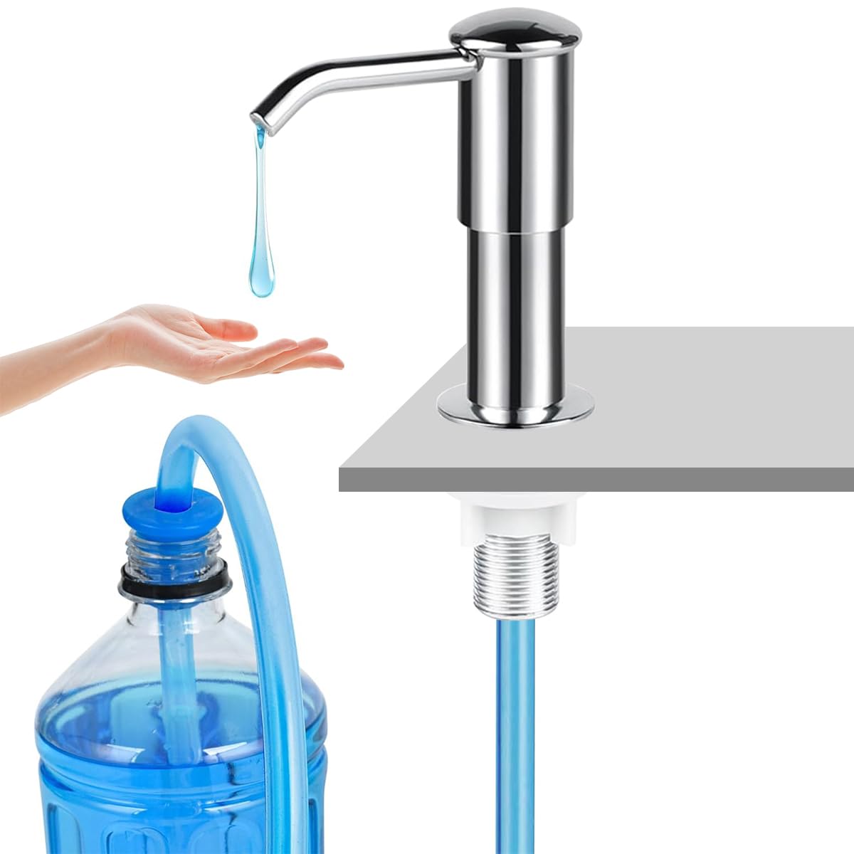 - EXTENDED REACH: Featuring a 3.3ft long pipe, this soap dispenser offers ample length to easily connect the pump to your soap container hidden beneath the kitchen sink. This extended reach ensures you dont need to constantly refill a small reservoir, enhancing convenience and efficiency.