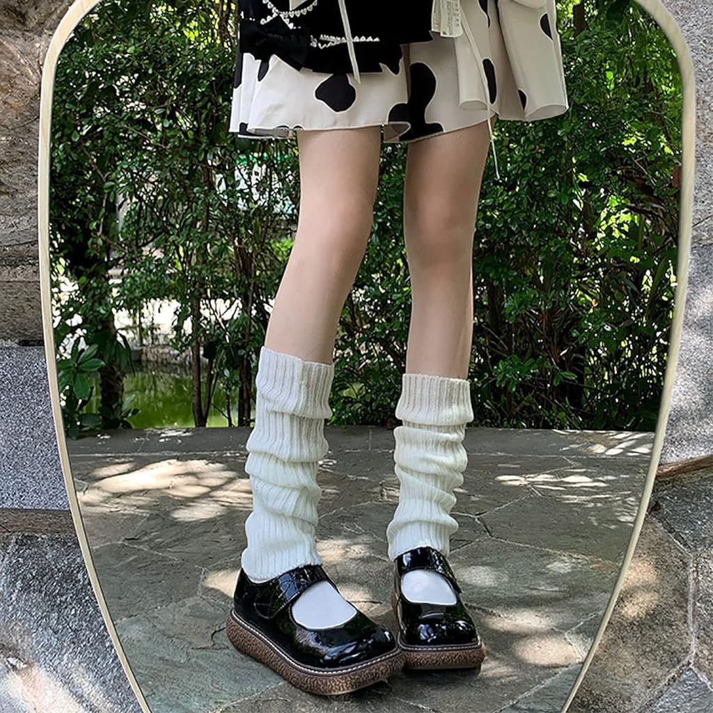 - LEG WARMERS STOCKS FOR WOMEN: Stylish white women leg warmer stocks, neatly knitting style leg warmer imitate old-school retro style, classic leg warmers, which you can wear it for school, work, daily, etc. Perfect ace fashion piece for cold weather.