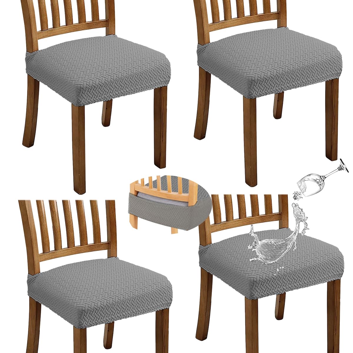 - Venzina Dining Chair Covers for Cushioned Seats with Jacquard Pattern | 4Pcs Stretchy Dacron Grey Set Venzina Dining Chair Covers for Cushioned Seats with Jacquard Pattern | 4Pcs Stretchy Dacron Grey Set
