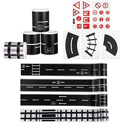 - CITY ROAD TAPE: The tape is printed with different traffic signs and different path lines.A scene tape for racing toy car,play gound decor, etc. Perfect cityroad tape for playing scene,DIY city map toy, etc.