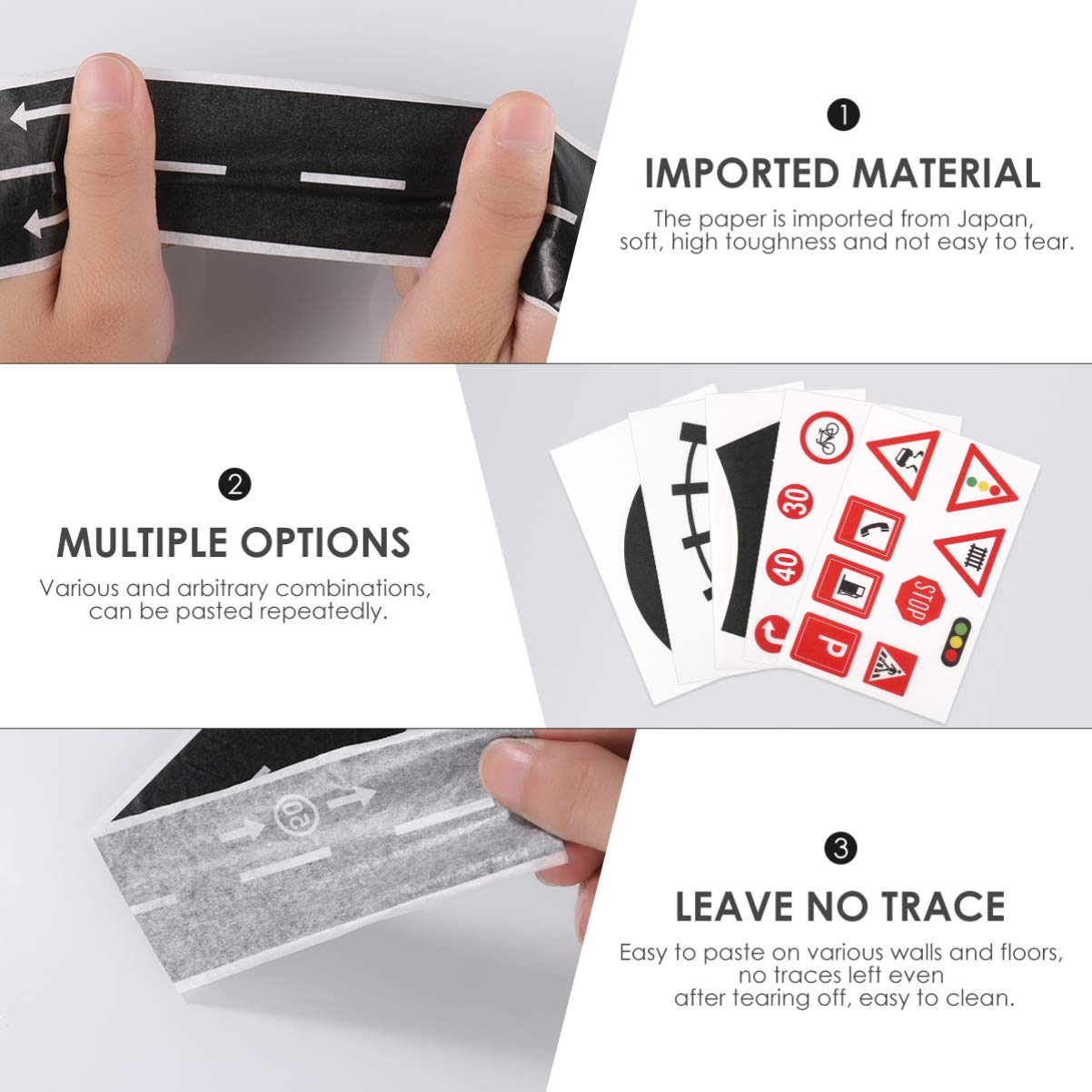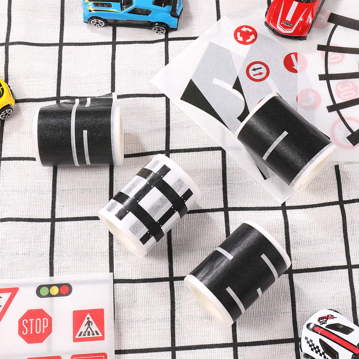 - PREMIUM WASHI TAPE:Premium washi tape material, easy to apply and tear off. Three different styles of road-like tapes, different traffic signs, bringing you a realistic experience.