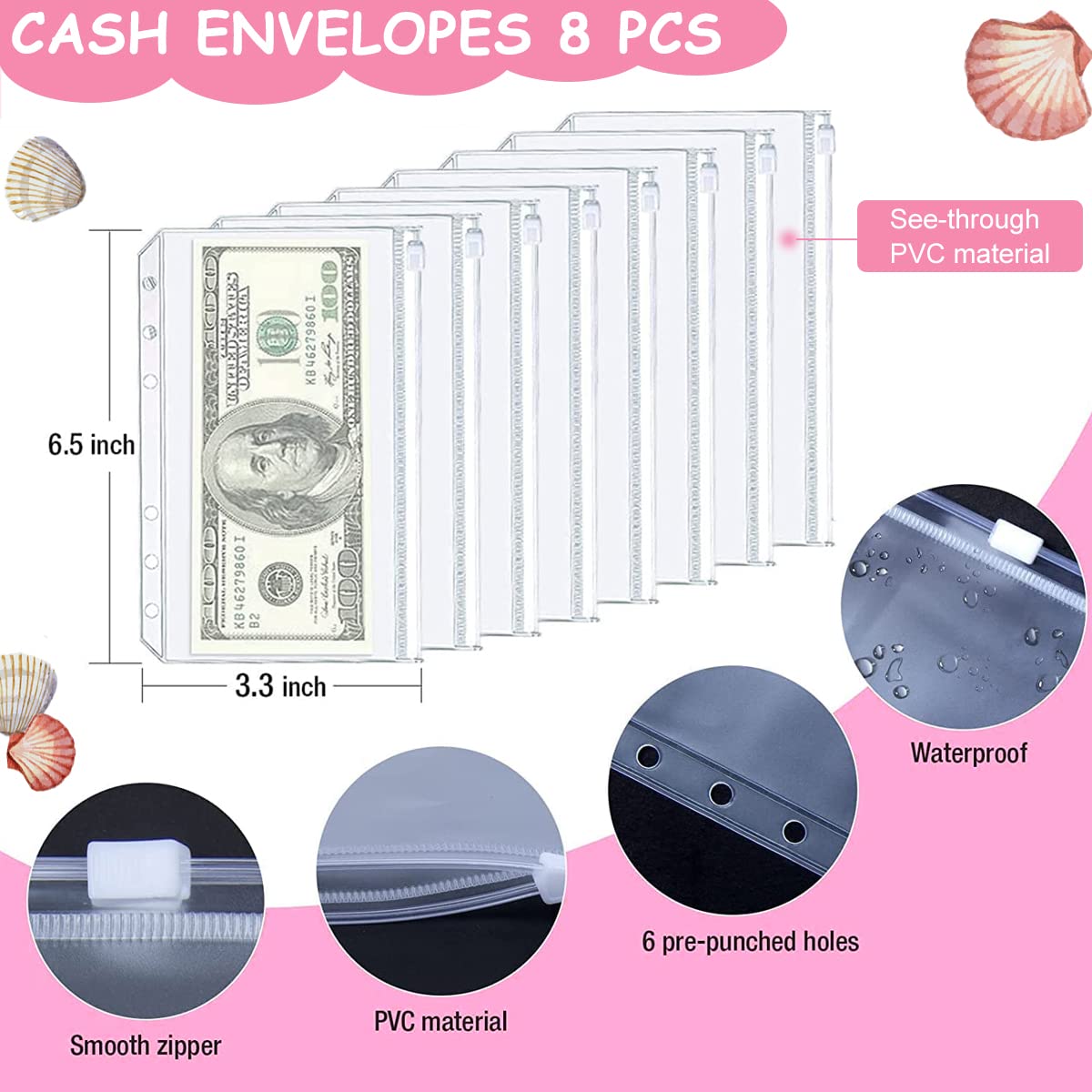- OFFICE RING BINDER CLIP SET: Full set of stationery supplies, finance binder set comes with A6 PU leather binder, 8 cash zipper envelopes, hard holder, open PVC bag, color label Stickers, 1 ruler.