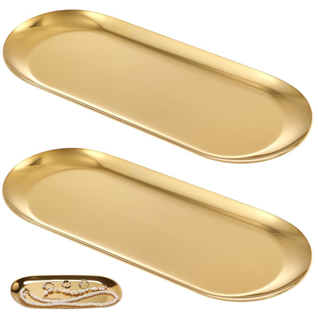 - HASTHIP Jewelry Organizer Trays for Dressing Table and Bathroom featuring 23x9 cm Stainless Steel Design | Golden Trinket Plates for Home Décor HASTHIP Jewelry Organizer Trays for Dressing Table and Bathroom featuring 23x9 cm Stainless Steel Design | Golden Trinket Plates for Home Décor