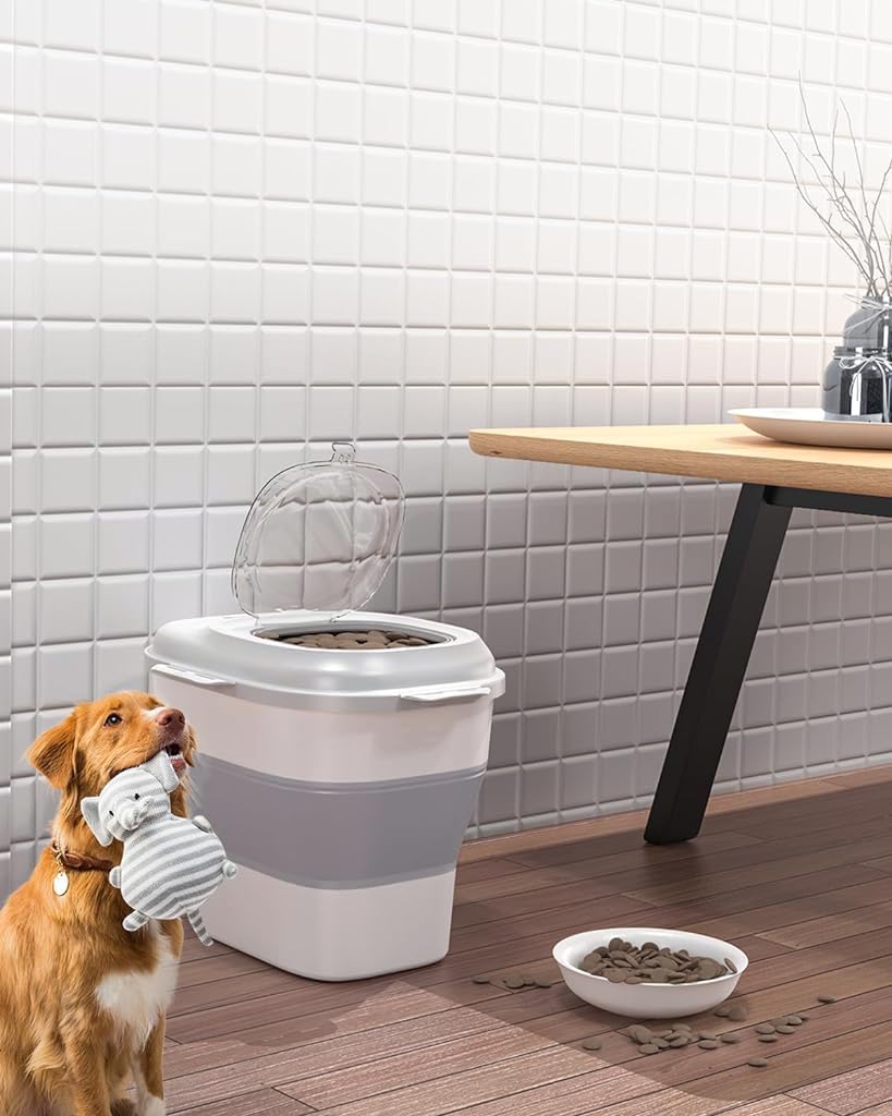 - GENEROUS STORAGE CAPACITY: Boasting a unique collapsible design, this innovative food storage container elastically adjusts to your storage needs, expanding smoothly from a compact 16.5 lbs to a generous 55 lbs capacity. Such versatility makes it ideal for managing space in your kitchen while catering to varying quantities of dry foods, whether you're stocking up or storing just enough for immediate use.
