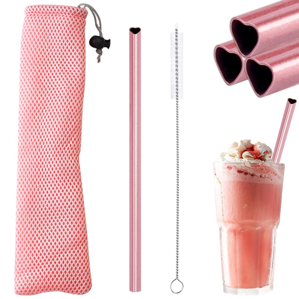 Stainless steel drinking straw HASTHIP® Stainless Steel Drinking Straw with Cleaning Brush & Drawstring Bag, Heart Shaped Metal Straw Bulks for Smoothies Tumblers Cocktail Milkshake, Pink offers an eco-friendly and reusable alternative to single-use plastic straws. Made of durable stainless steel, it combines longevity and style for everyday beverages like cocktails, smoothies, or milkshakes. The unique heart-shaped design provides a comfortable sipping experience while adding a romantic touch to any occasion. Its included cleaning brush allows effortless maintenance, ensuring hygienic reuse after every drink. Conveniently packed in a portable drawstring storage bag, it suits daily, travel, or outdoor use, reflecting HASTHIP’s commitment to sustainable and functional drinkware.