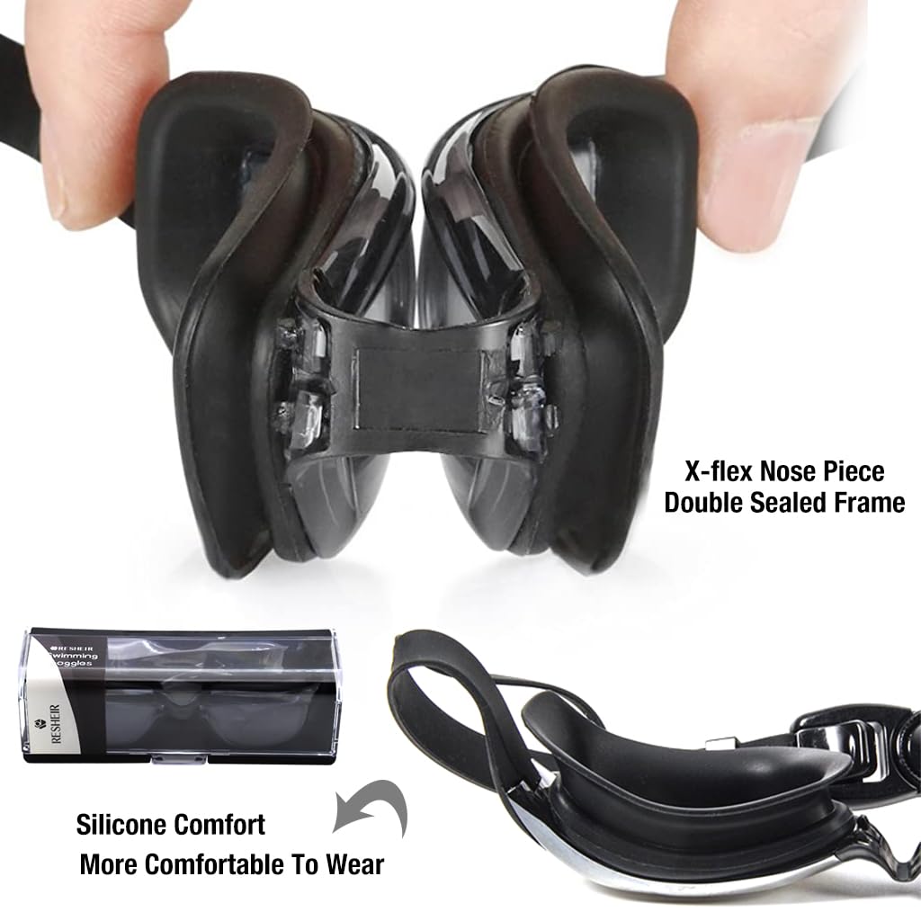 Optifit Swimming Goggles for Men Women with Ear Plugs & Portable Case & 2 Replaceable Nose Pads, Professional Anti-fog, Leakproof and UV-Protection Swim Goggle for Swimming, Surfing, Kayaking