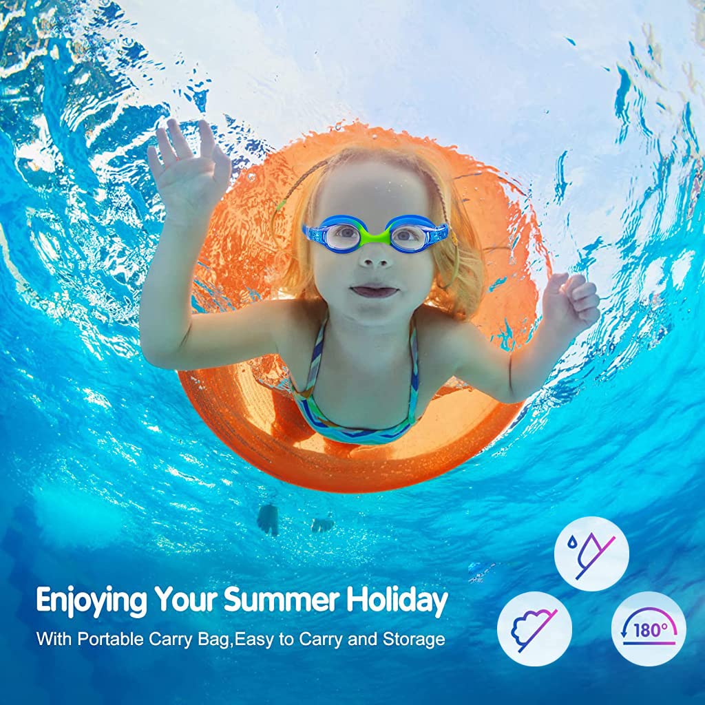 - ESSENTIAL SWIMMING ACCESSORIES FOR KIDS: Let kids enjoy a joyful and worry-free swimming with this swim goggles, also coming with one nasal splint and a pair of silicone ear plugs. Preparing a good swim goggles kit for kids and ready for the summer fun.