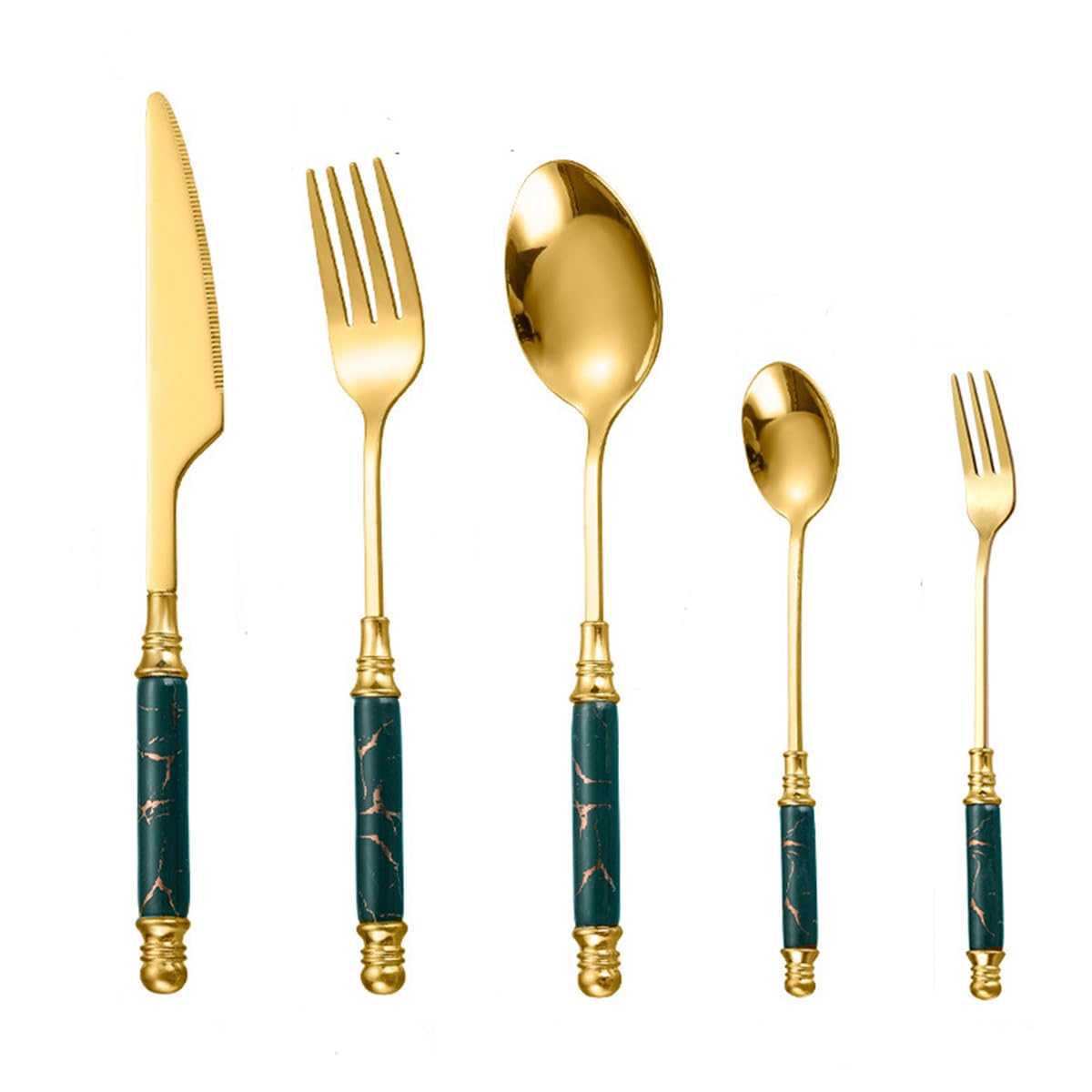 - Includes five versatile utensils—knife, fork, tablespoon, dessert spoon, and fruit fork—suitable for different dining occasions.