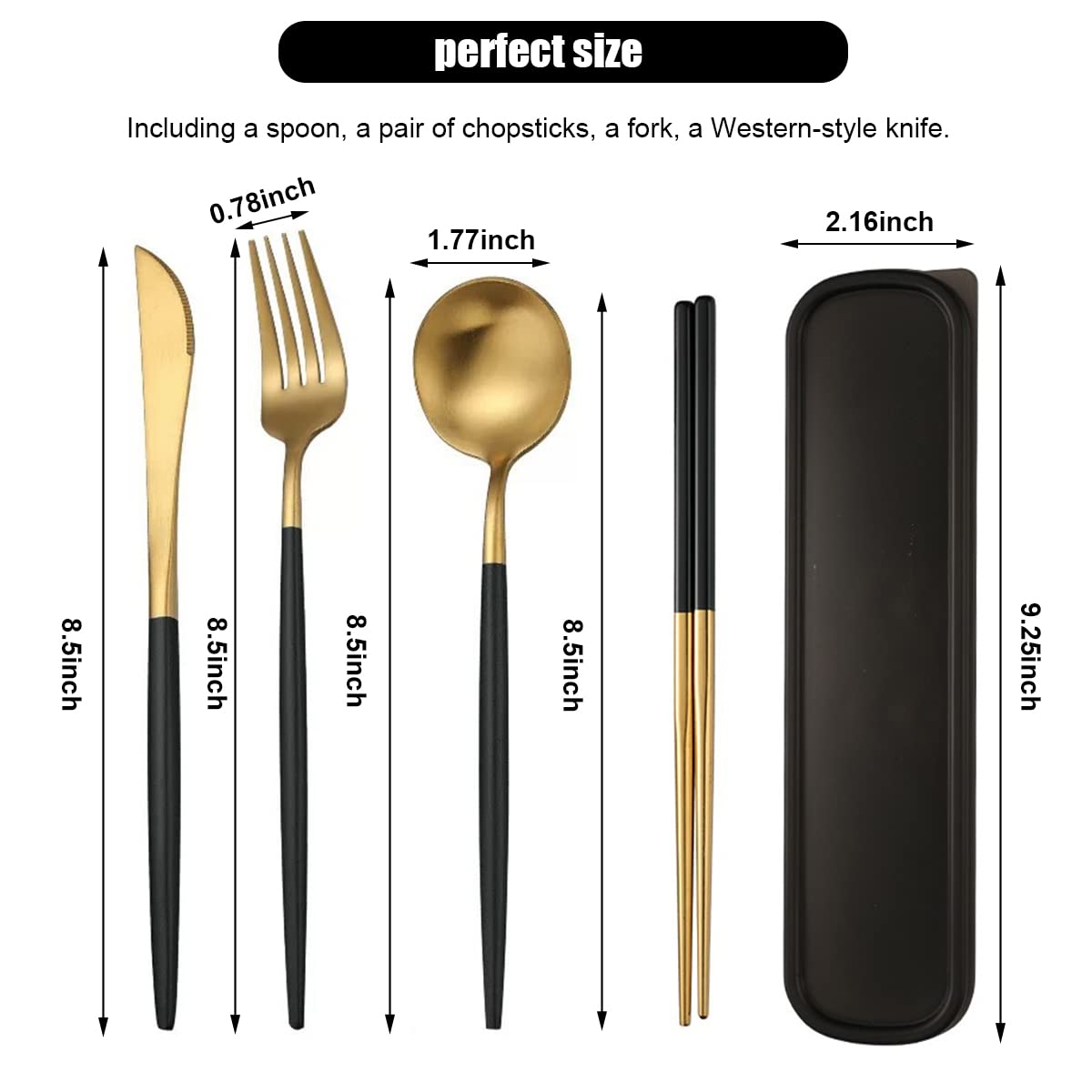 - Supvox 410 Stainless Steel Knife Fork Spoon Chopstick Set, Portable Travel Utensil Flatware Sets with Case, 4Pcs Spoon Fork Knife Chopstick for Picnic Camping Travel & Outdoor Lunch (Black Gold) Supvox 410 Stainless Steel Knife Fork Spoon Chopstick Set, Portable Travel Utensil Flatware Sets with Case, 4Pcs Spoon Fork Knife Chopstick for Picnic Camping Travel & Outdoor Lunch (Black Gold)
