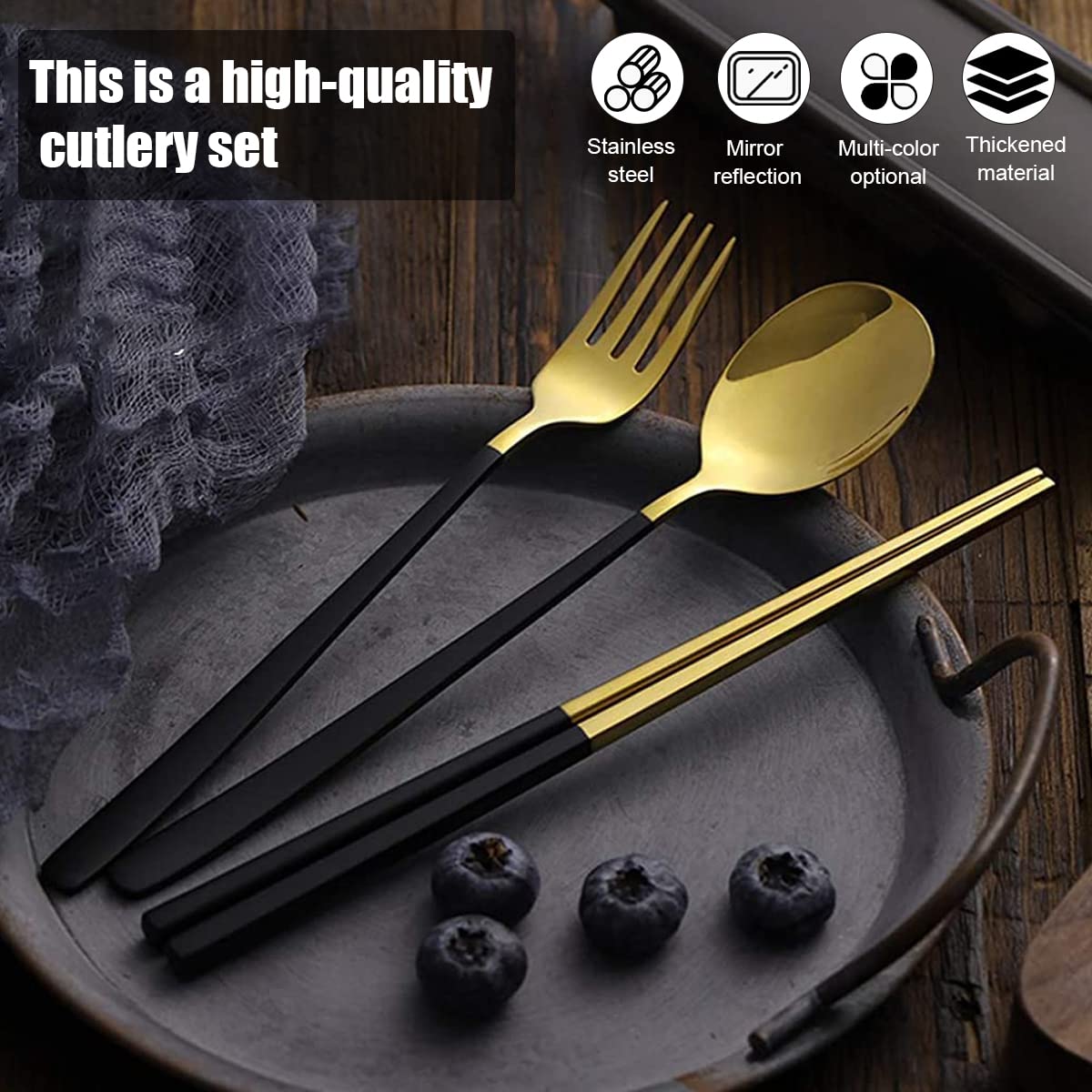 - [4Pcs Luxury Gift Packing Cutlery Set]--Including one spoon, a pair of chopsticks,one fork, one western cutter.Perfect texture and touch feeling,luxury color makes it a nice cutlery set for all, decent party dining cutlery, wonderful gift flatware,travel tableware.