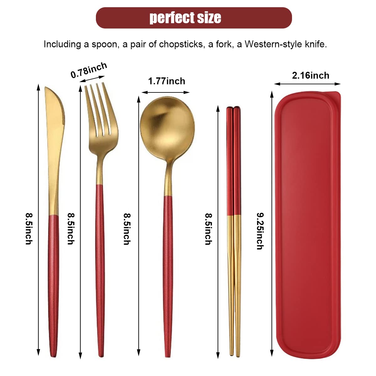 - Supvox 410 Stainless Steel Knife Fork Spoon Chopstick Set, Portable Travel Utensil Flatware Sets with Case, 4Pcs Spoon Fork Knife Chopstick for Picnic Camping Travel & Outdoor Lunch (Red Gold) Supvox 410 Stainless Steel Knife Fork Spoon Chopstick Set, Portable Travel Utensil Flatware Sets with Case, 4Pcs Spoon Fork Knife Chopstick for Picnic Camping Travel & Outdoor Lunch (Red Gold)