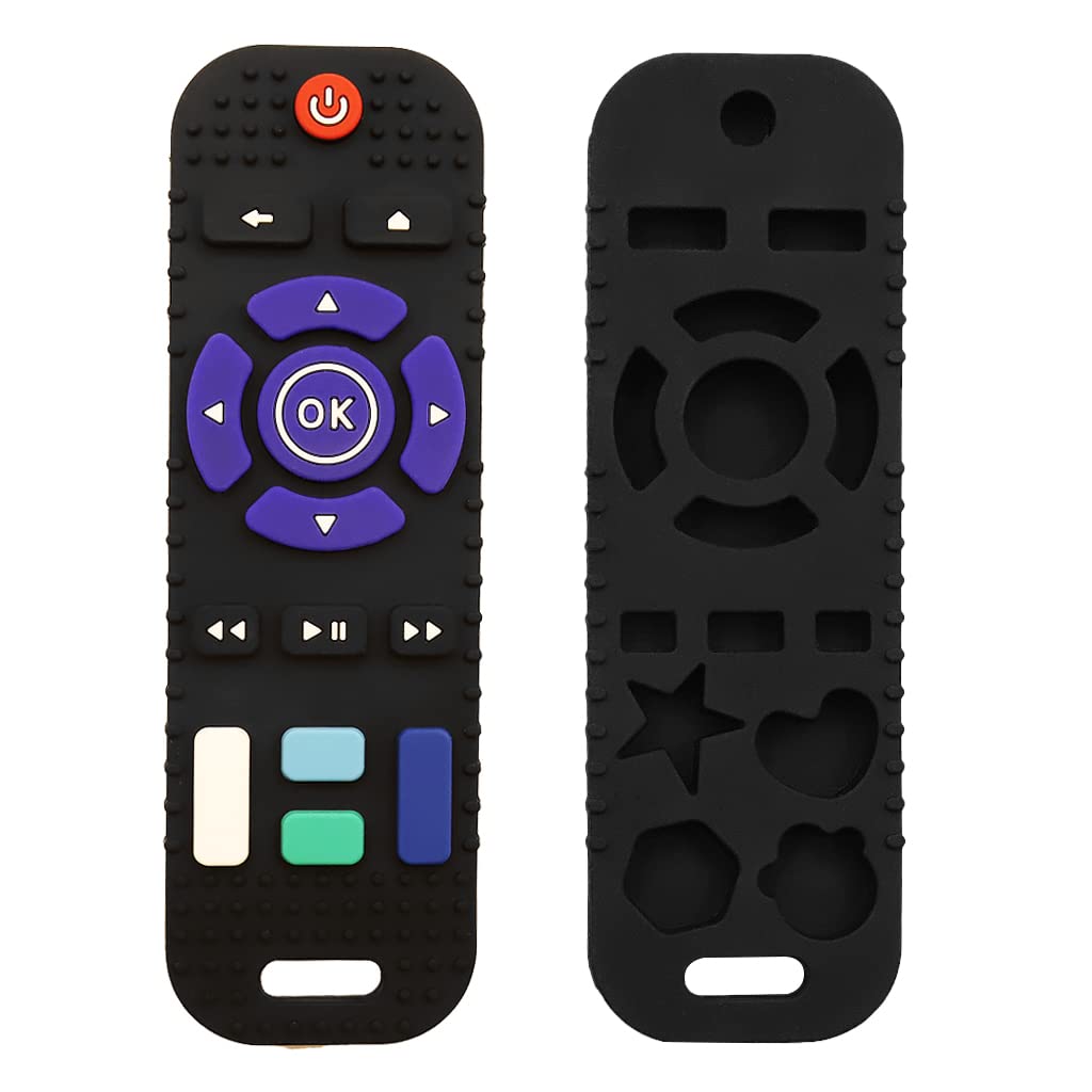 - Textured surfaces inspired by remote controls encourage tactile exploration.
