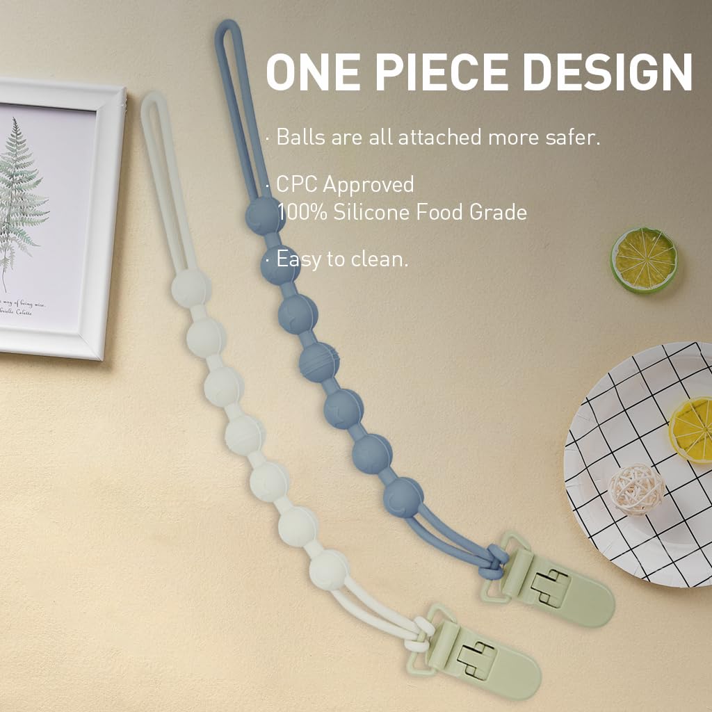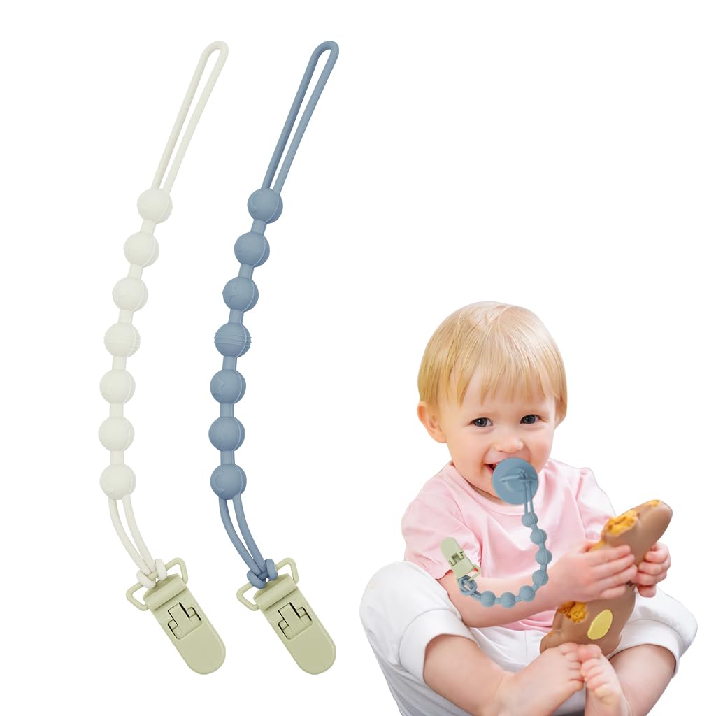- IDEAL GIFT CHOICE: This set of 2pcs silicone beaded pacifier clips is the perfect present for new parents and their little ones. Designed with both functionality and style, easy to clean and long-lasting, these pacifier clips are sure to be a hit at baby showers, birthdays, or any other gift-giving occasion. Give the gift of convenience and style with this practical and adorable addition to any baby gear collection.