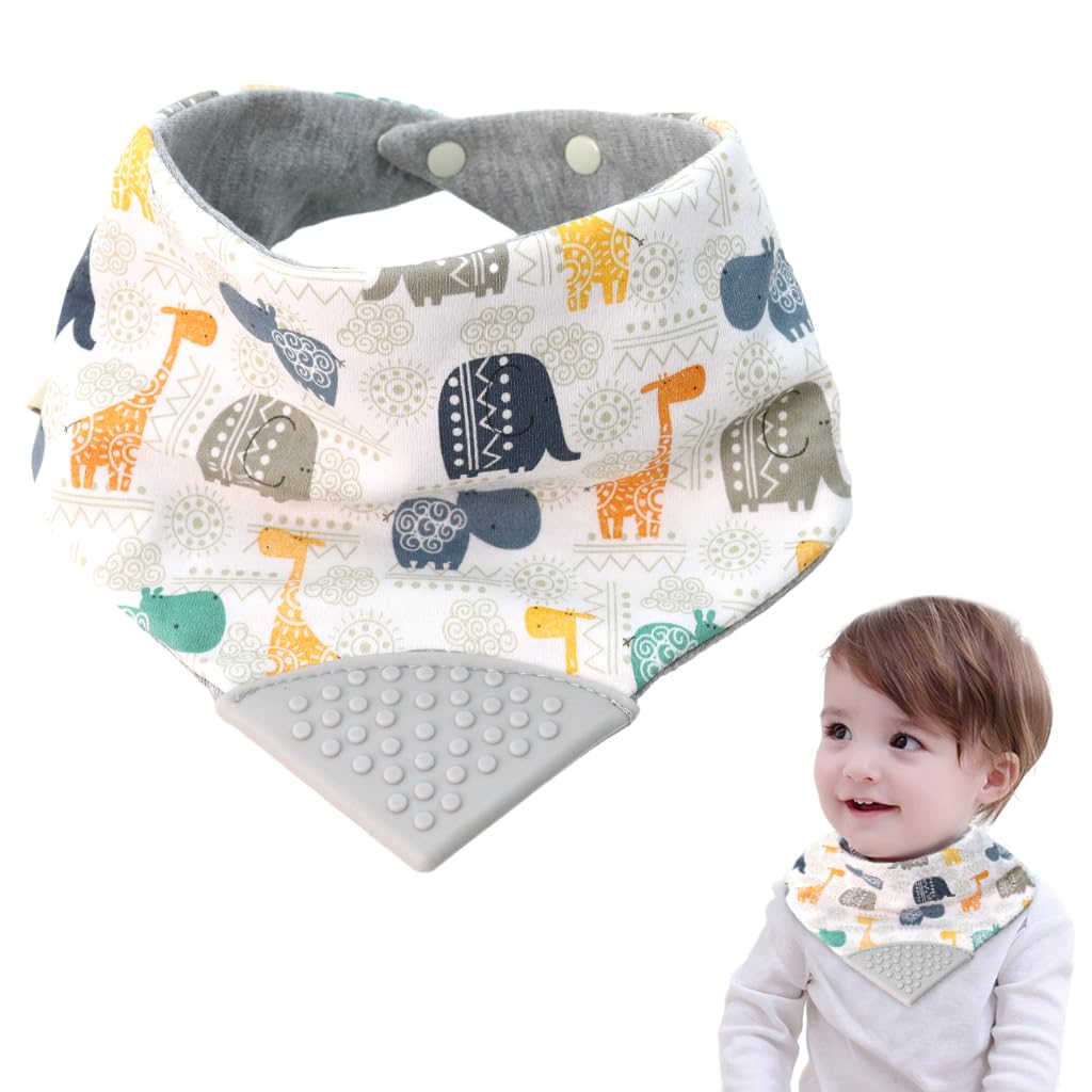 - SMALL TEETHER DESIGN: Designed with additional functionality, this bib features a small teether to help soothe your baby's discomfort during teething. The teether promotes relief from the uncomfortable feeling often associated with teething, providing both practicality and added comfort.