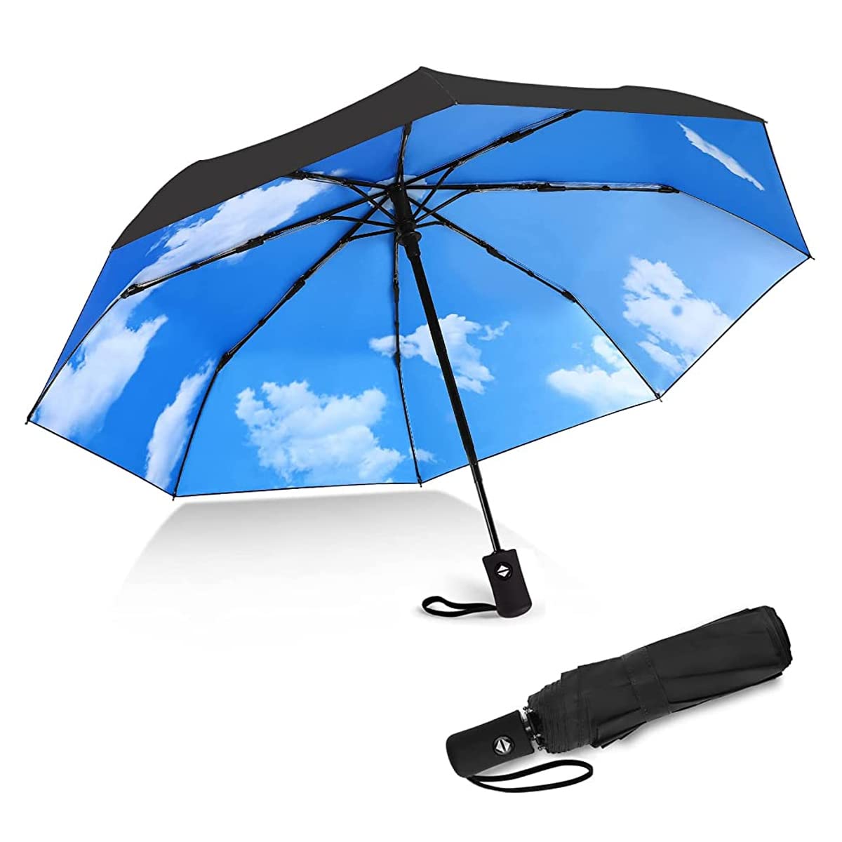 - PALAY Automatic Folding Travel Umbrella with 8 Ribs and UV Protection Black Compact Design for Women PALAY Automatic Folding Travel Umbrella with 8 Ribs and UV Protection Black Compact Design for Women
