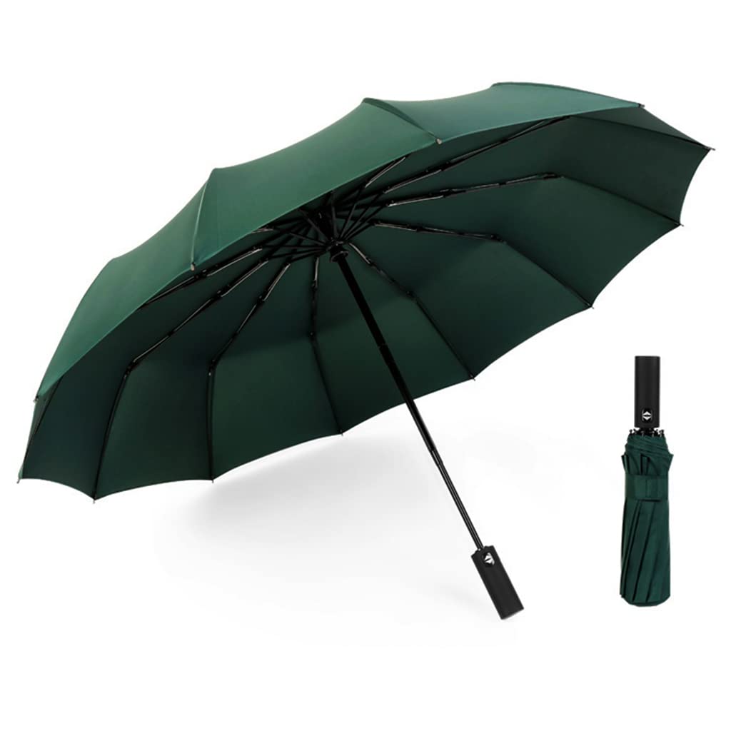 Venzina Umbrella for Travel with 12 Fiberglass Ribs and 41 in Coverage | Auto Open Green