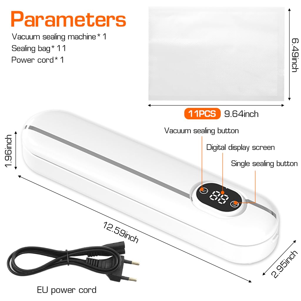 - 10 FREE VACUUM SEALER BAG: Coming with 10 vacuum sealer bags, made of thick PA+PE material, durable to usemoisture-proof and mildew-proof, foodgrade quality, safe to use. Can be used for meat, cereal, fruit, deli, etc. Keeping the freshness of the food and ensuring the sanitary.