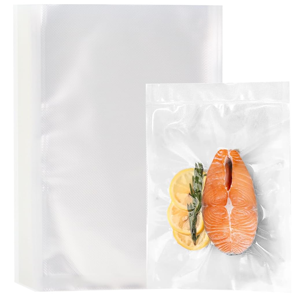 - [High Efficiency Vacuum Performance]--Double side texture design vacuum sealer bag, one side is smooth suface,another side is grid textured surface which is booster the airtight vacuum effect,preventing bacterial growth and keeping food fresh and tasty.Suitable for various food, including freezed meat, vegetables, fruits, bacon,kids meal, nut,etc.