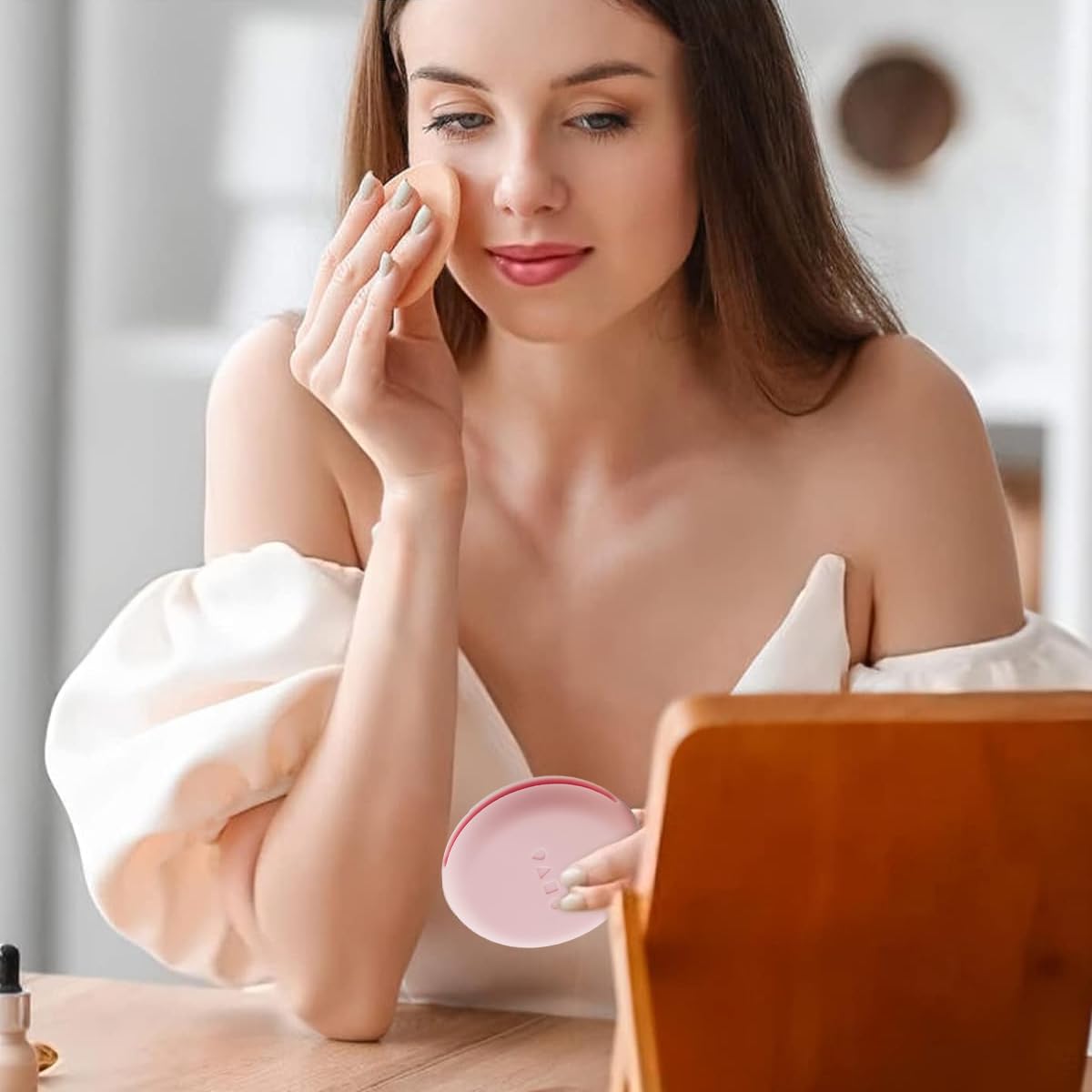 - SQUEEZE-TO-OPEN SILICONE POWDER PUFF HOLDER: The silicone powder puff holder is designed in a circular shape, providing a convenient and sanitary storage solution for makeup sponge or puff . Moreover, it also features easy to open design, making sure you have an easy access to the sponge or puff. This innovative design prevents moisture buildup, thus keeping the puffs fresh and ready to use.