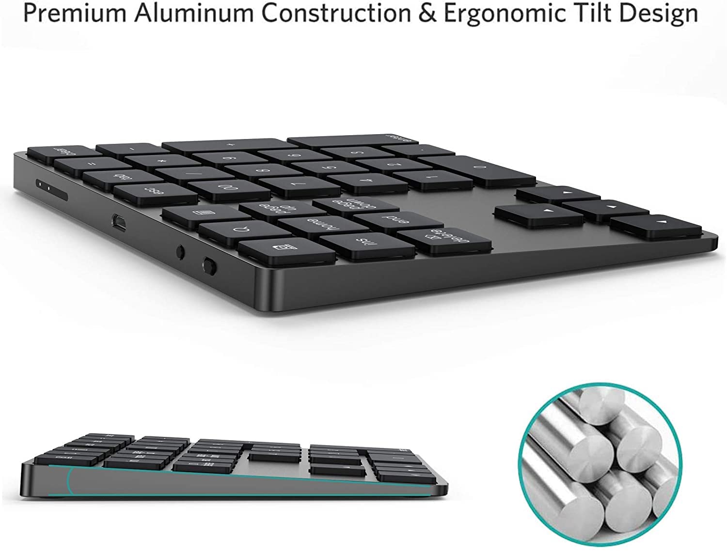 - SLIM NUMERIC KEYPAD: This compact aluminum alloy 34 key numeric keypad numpad is definitely a great auxiliary tool or extension for the laptop. Stable wireless bluetooth connection, high senstivities, no need to take over any interface on the laptop yet saving the trouble to switch keys to type numbers. Number keyboard imac pro one hand keyboard laptop keypad keypad for laptop numpad numpad keyboard number keypad. Forget searching through a full row of numbers on no numpad keyboards.