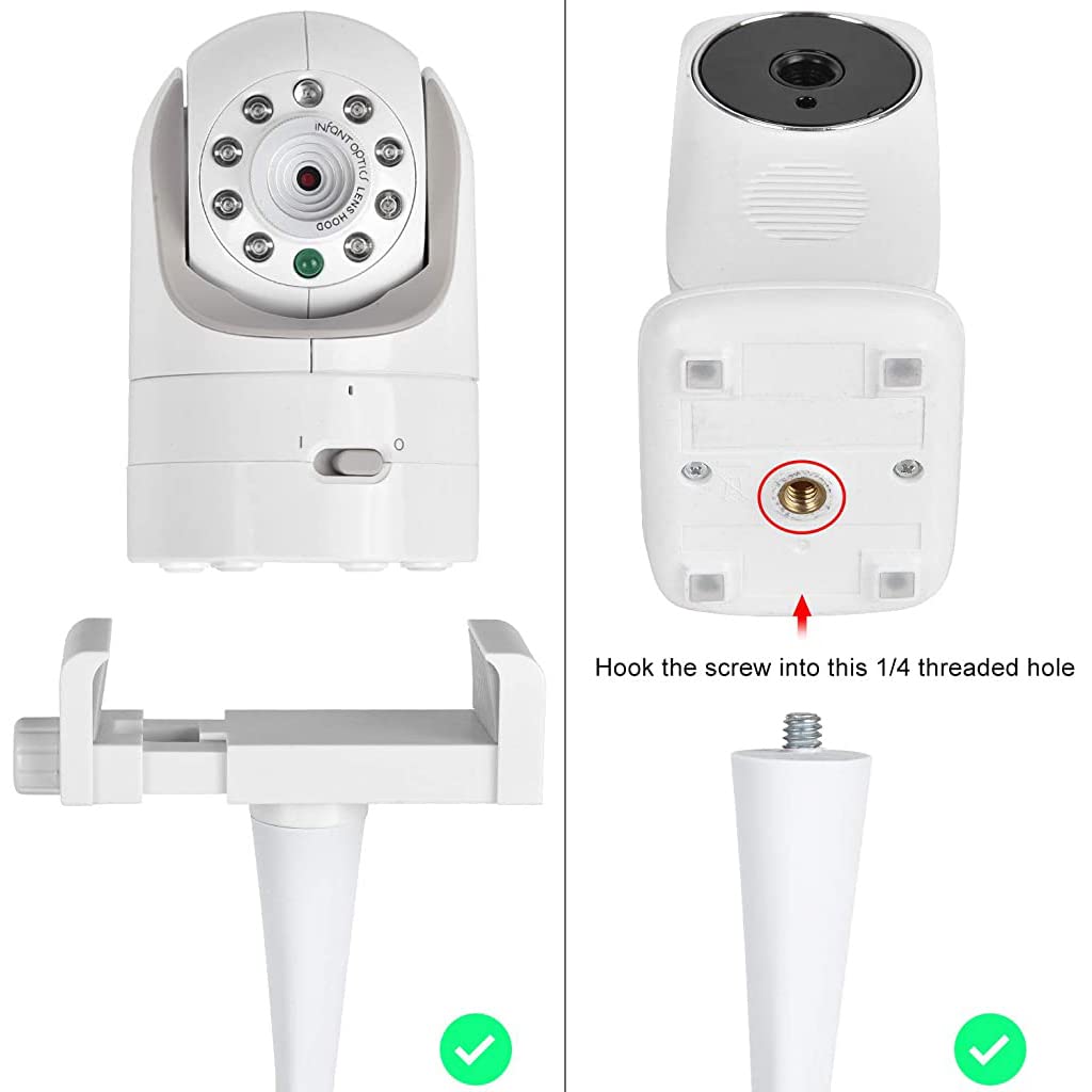 - UNIVERSAL BABY MONIOTRS HOLDER: The baby monitor holder fits all cameras with a base or stand less than 4 inches wide. This baby monitor mount Compatible with Infant Optics DXR-8 and DXR-8 PRO baby monitor and other most baby monitor cameras. It also fits all cameras with a straight body. Adjustable monitor clamp is adjustable which can be compatible with most baby monitor, security monitor, monitor cameras in market (Baby Monitors are not included)