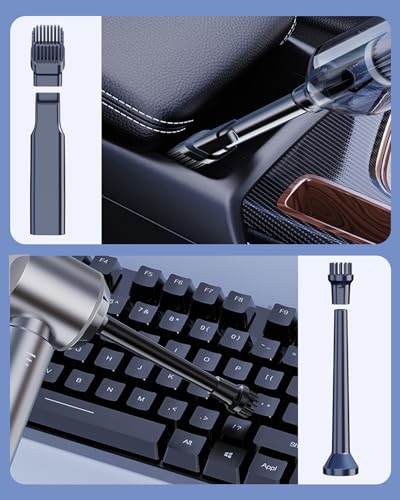 - POWERFUL STRONG SUCTION: Upgrade 15000Pa high efficient vacuum ability powered by 100W high performance motor, allows you can efficiently clean the dust, debris or crumbs on carpet, seat, sofa, window, gap, etc also can quickly draw the air out from vacuum storag bag, etc. Using as a inflator or air blower also can help you quickly clean micro dust on camera, blow out the dust on including camera lens, keyboard, screen, etc.