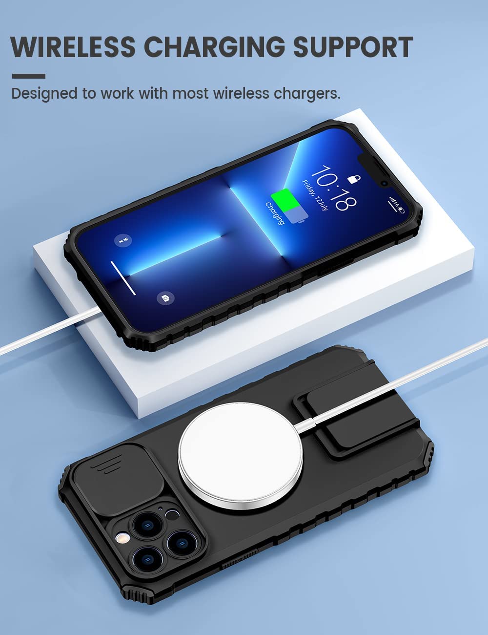 - [Special TPU Material]--Made of Plastic+Silicone+TPU material,of outstanding wear resistance, heat resistance, anti-slip,to protect your iPhone13 Pro Max from accidental drops, shocks, shocks, bumps and scratches.Also support wireless charging without removing the cover.