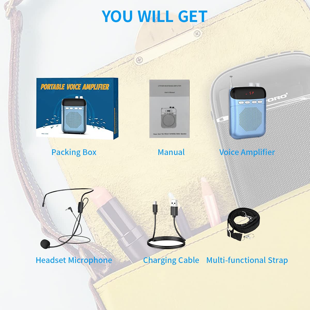 - CARRY-ON VOICE AMPLIFIER: Complete Voice Amplifier Microphone, including headphone for your convenience, plug and play. Also coming with a belt, you can install it on the Amplifier, you can take it in crossbody way, or fasten it on your waist. Compact and portable, easy to take.