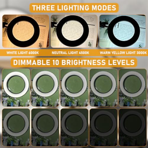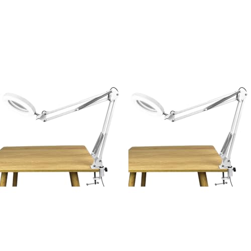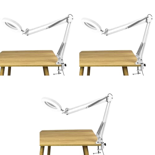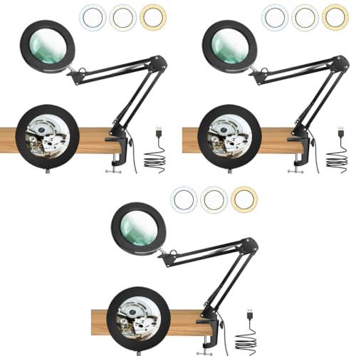 HASTHIP® Desk Magnifying Glass with USB LED Light, 5X Magnifier Glass with Flexible Metal Arm, 3-Color LED Light, for Crafting, Sewing, Electronics Repair, Model Building