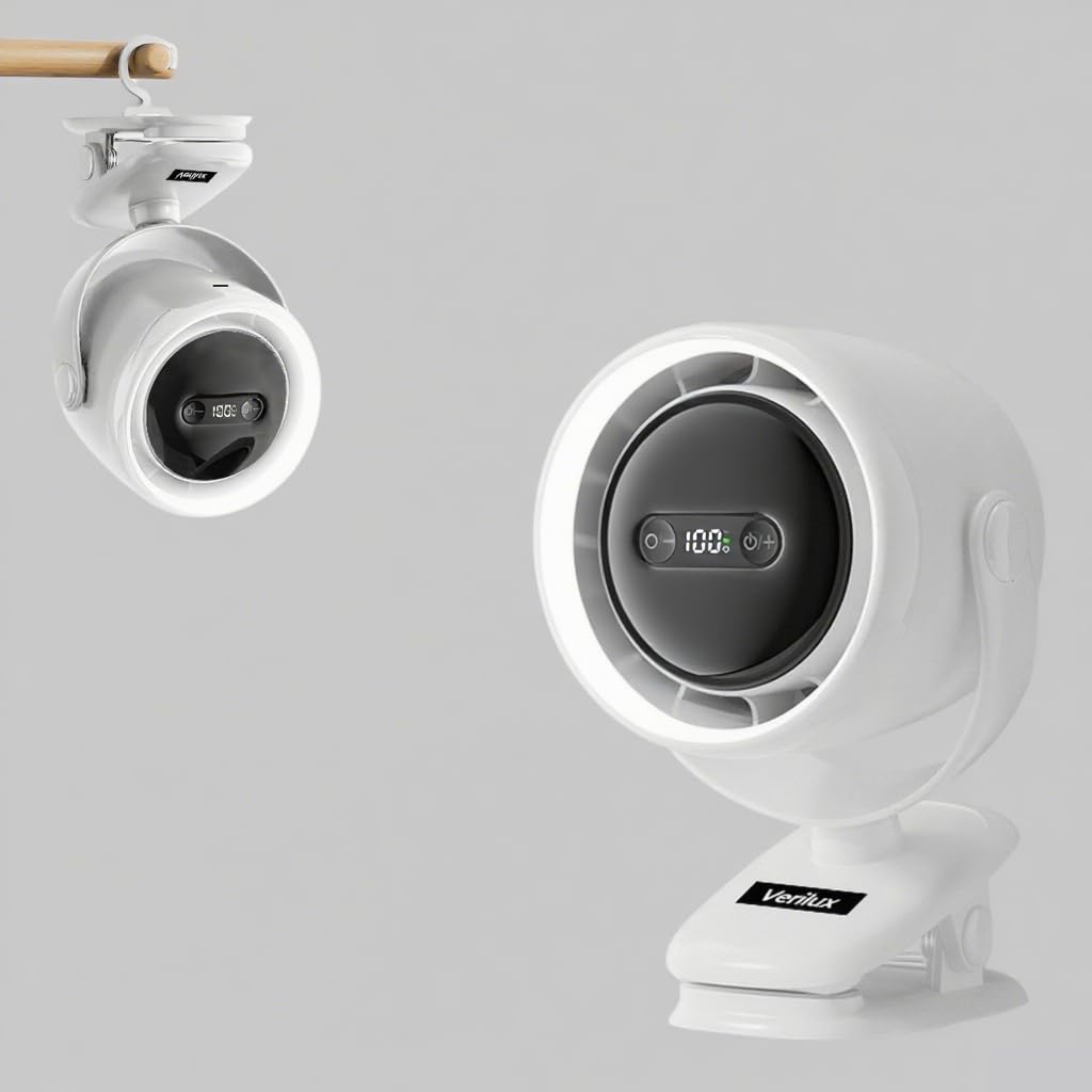 Verilux USB Mini Desk Fan with LED combines cooling efficiency and ambient lighting in a compact, portable design. Featuring stepless airflow control with a 100-level adjustment and an easy-to-read LCD display, it allows precise customization from gentle breezes to strong airflow. The dimmable night light with three brightness levels provides soft illumination suited for reading or relaxation. A sturdy clip-on mechanism lets the fan attach securely to desks or other surfaces, while its rechargeable 7200mAh battery supports cordless operation for extended use. Designed for personal comfort, this Verilux fan delivers reliable performance whether at home, in the office, or while traveling.