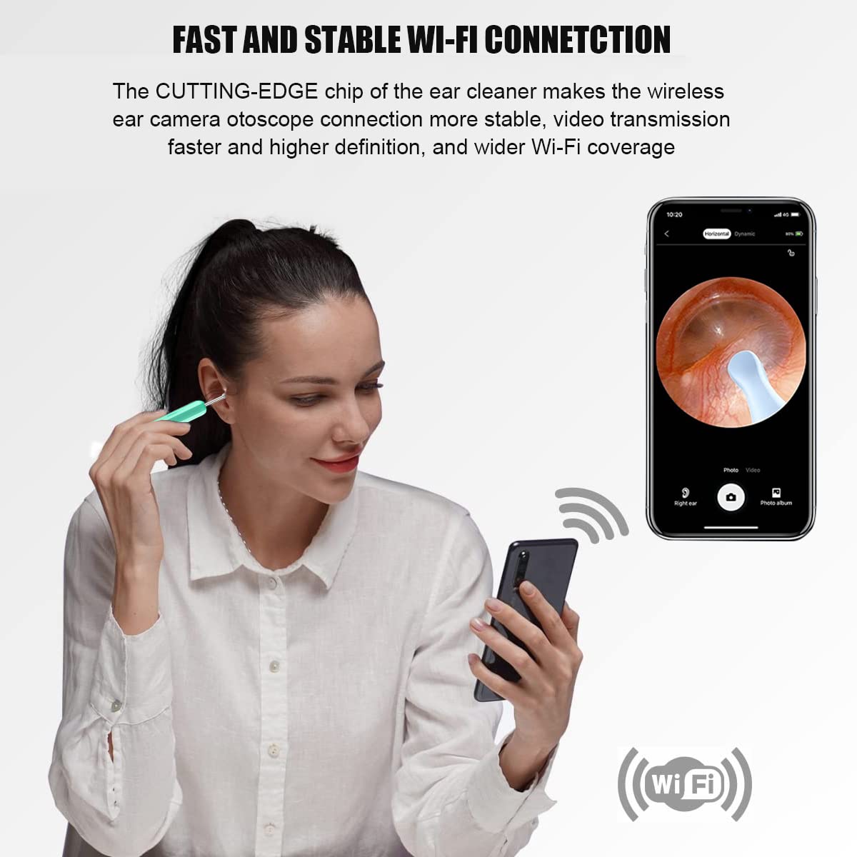 - [ FAST AND STABLE WI-FI CONNETCTION ] -- The CUTTING-EDGE chip of ear cleaner machine allows wireless ear camera otoscope a more stable connection, a faster and HD Video Transmission, and a wider Wi-Fi Coverage. This baby ear cleaner kit has a Long-distance transmission technology, which dog ear cleaner delivers a highly efficient wireless connection, even in different rooms separated by walls when using wax remover for ears!