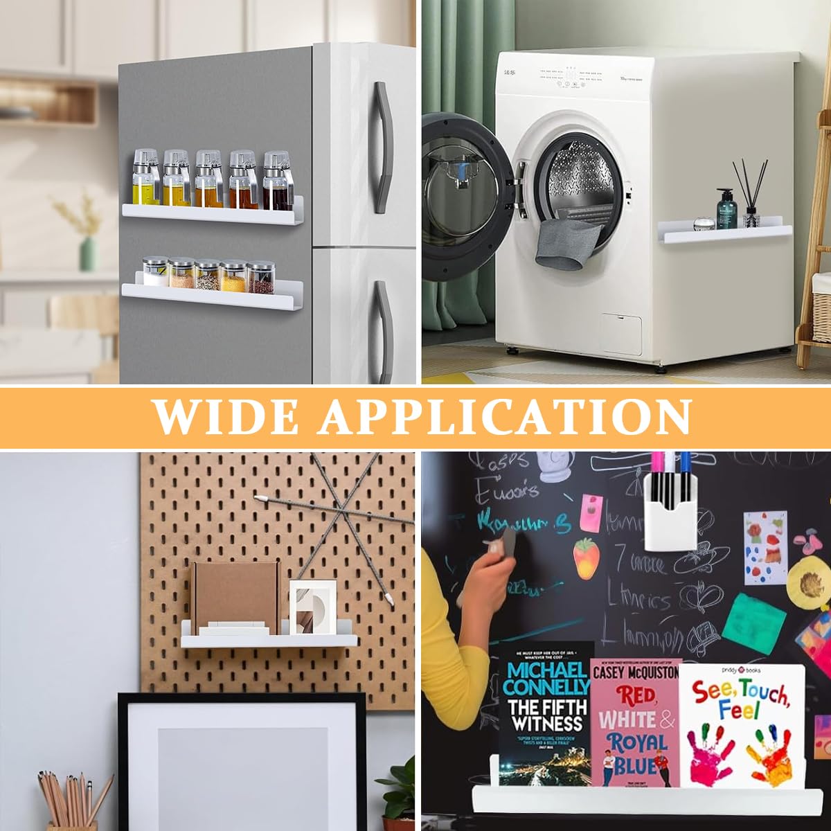 - EASY TO USE: The magnetic bookshelves for whiteboard are very easy to use, just attach it directly to smooth magnetic surfaces, which is very convenient and fast. At the same time, please tear off the protective film on the surface before use.