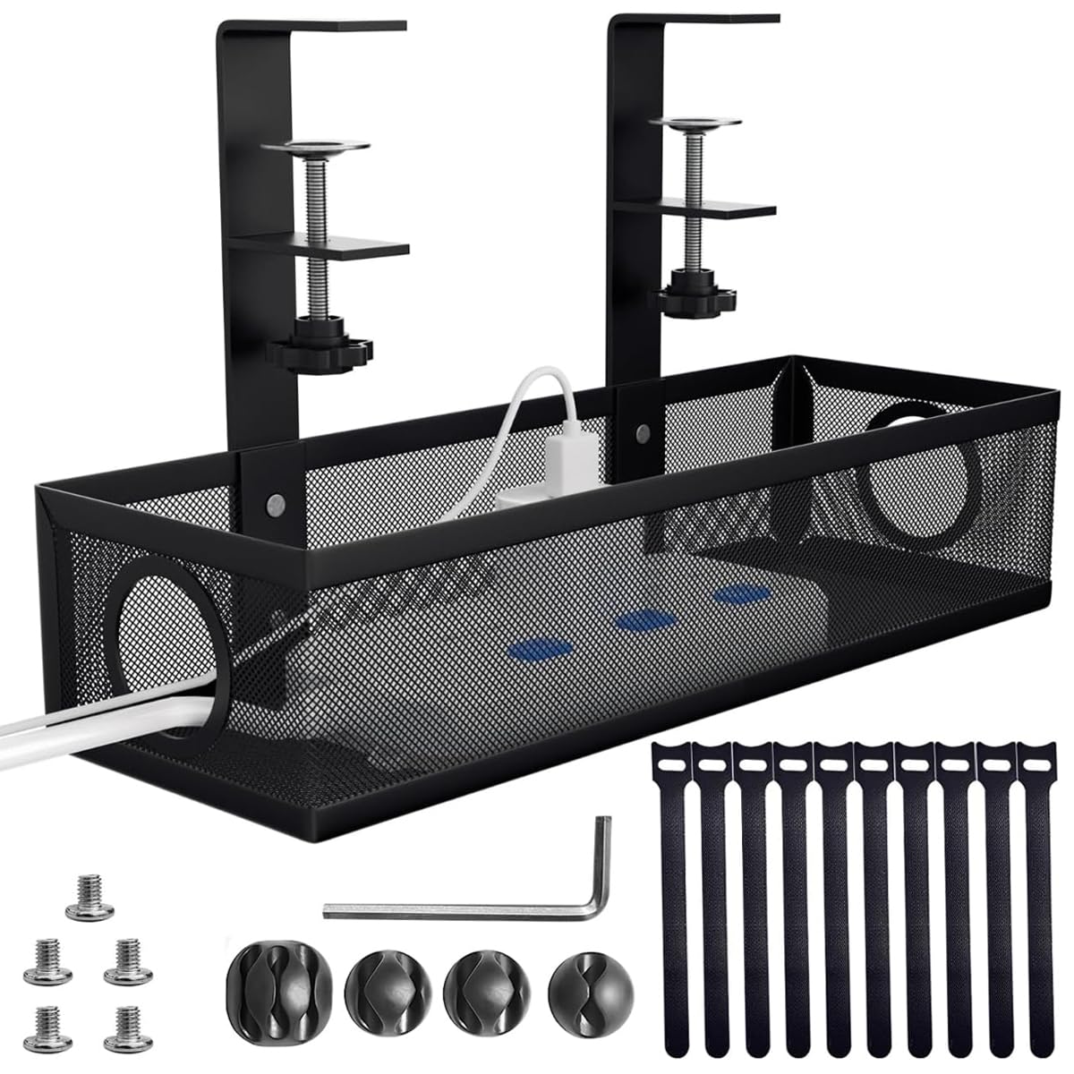 Climberty Adjustable Under Desk Cable Organizer Rack is designed to efficiently manage wires and power cords while maintaining a clean, organized workspace. Made from durable metal, this cable management rack features a sturdy square basket structure with dual open ends for easy cable routing. Its adjustable screw-fixed mounting system fits various desk thicknesses and allows flexible installation without drilling. Ideal for keeping power strips, network cables, and accessories neatly arranged, it helps reduce clutter and create a more professional environment. Suitable for both home and office setups, Climberty provides a reliable solution for improving workspace safety, organization, and overall functionality.
